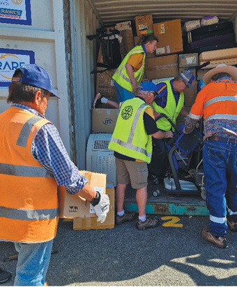 Recently, containers of goods have been sent to Papua New Guinea, Manus Island, Vanuatu, Solomon Islands, Fiji, the Republic of Congo, and Uganda, filled with requested items. Once a month, we call upon Rotarians from several Brisbane clubs to come and assist, and recently, they answered the call with 16 volunteers from Cleveland out of a total of 60 volunteers, made up of Rotarians and friends. It’s a wonderful way to help others in the world who do not have the privileges that we in Australia take for granted.