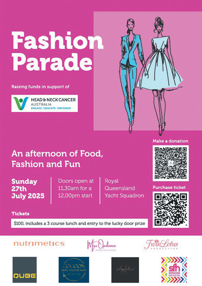 In November, I will be embarking on a four-day trek through the Three Capes in Tasmania to raise money and awareness. One of the first fundraisers I am hosting is a Fashion Parade on July 27 for World Head and Neck Cancer Day at the Royal Queensland Yacht Squadron.
