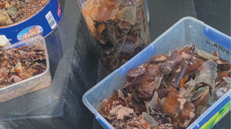 I thought when I started bringing a container to collect glass and my daily haul exceeded 100 every time that the glass would get hard to find, but in March this year, in one weekend, I collected over 800 pieces (that’s my ‘PB’), and the first weekend in April was 430 pieces.