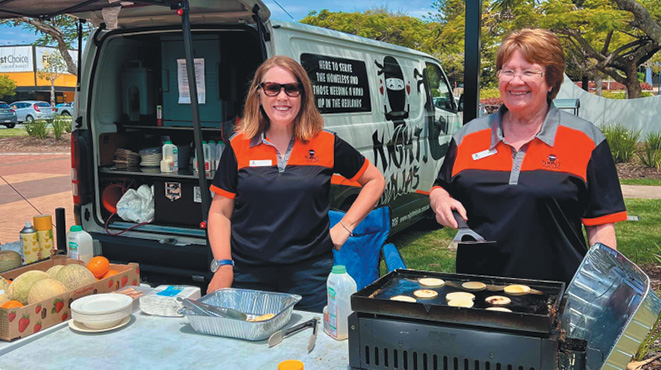 The Night Ninjas now have two food vans and supply evening meals on Monday night at Cleveland, Wednesday night at Redland Bay and Thursday night at Birkdale. They also supply two morning meals at Redland Bay Ferry on Wednesday and Thursday.