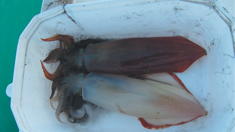 I use extra-light rods, 5 to 6 feet, and a 10-pound line. It’s a good idea to use a net with a long handle to scoop them up. Their ink is ten times thicker than squid ink, and it is hard to clean. I use a stainless steel bucket to put them in, and the best ink-cleaning method I have found is 30 Seconds cleaner from Bunnings – it dissolves the ink from everything, but make sure you wash all surfaces down with water after using it.