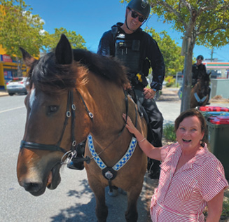 You may hove noticed more Mounted Police Unit patrols in Wynnum Central recently. The Mounted Police Unit, based out in Moggill, have been undertaking regular scheduled patrolling of our Bayside. Pictured is 11-year-old Lance and his much shyer older brother Karma in the background, who is 13. The Mounted Police Unit are frontline operational police officers, except they carry out their duties from above crowd level astride a horse. There’s a few extra duties as well…training, grooming, brushing, feeding, exercising, mucking out stables and picking up poo, just to mention a few.