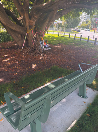 Baysiders may have noticed the unveiling of a memorial seat for Declan Phillips opposite the Wynnum RSL – a beautiful, quiet place for reflection beneath the shade of a much-loved tree.