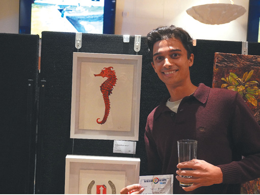 The highly anticipated annual Kaleidoscope Art Exhibition and Awards at The Manly Hotel brought together a vibrant mix of young artists, local creatives, students, and tutors to celebrate artistic talent. This year’s open category saw over 60 entries, showcasing a wide range of artistic expressions. The evening began with a beautiful performance by Jillian from Harpwaves, whose melodic harp tunes set a serene atmosphere for guests to appreciate the artwork.