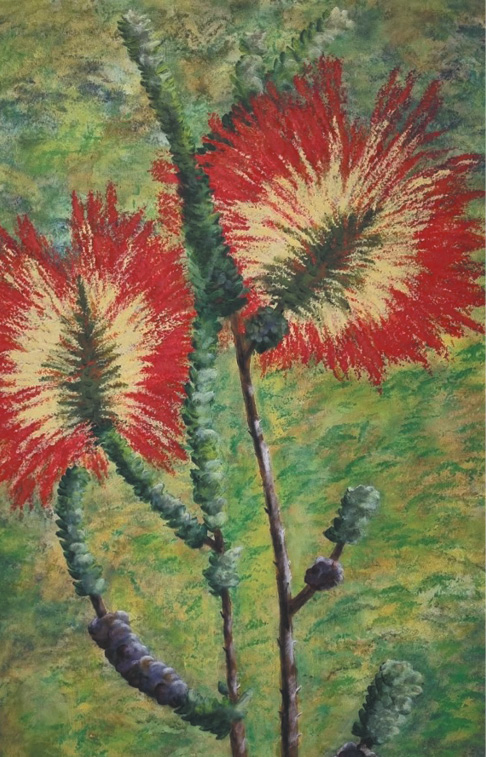 “I’m a keen gardener, so I’ve come to know the details of various plants and flowers,” Carol says. “When Russel and I travelled around Australia, if we pulled up to go bushwalking, he’d be way ahead of me with a camera, but I stopped to look at things. I took notes in my diary, but no sketches, no photographs, I just kept the pictures in my head.”