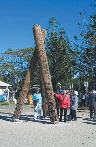 By 1958 the timbers were rotten and the Brisbane City Council rebuilt the jetty with solid rock materials. The Rotary Quandamooka project of 2005 resulted in the erection of three jetty timbers at the entrance, transported from the disused Hamilton Wharves as a remembrance of the original No 2 Jetty and signifying Past, Present and Future. Tiled pictures of Indigenous sayings, with seasonal messages, are inlaid on the walkway.
