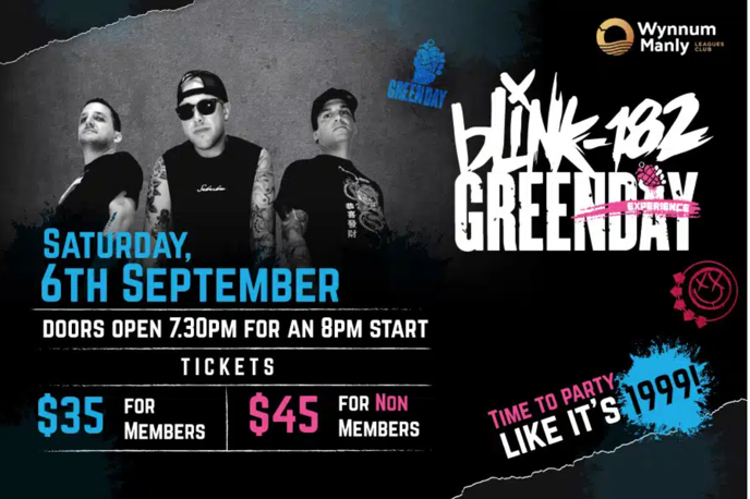 Australia’s #1 Blink 182 and Green Day tribute band explodes onto the Wynnum Manly Leagues Club stage for one wild, high-energy night. Expect non-stop anthems from every era, including All the Small Things, Basket Case, and loads more emo and pop-punk bangers from Welcome to the Black Parade to Sugar,