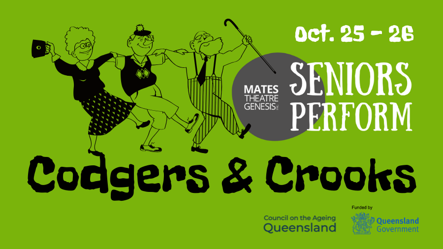 Mates Theatre Genesis is celebrating Queensland Seniors Month with a double dose of laughter, mischief and mayhem. Seniors Perform-Codgers & Crooks hits the stage at the Donald Simpson Centre, Cleveland on Saturday 25th and Sunday 26th October.