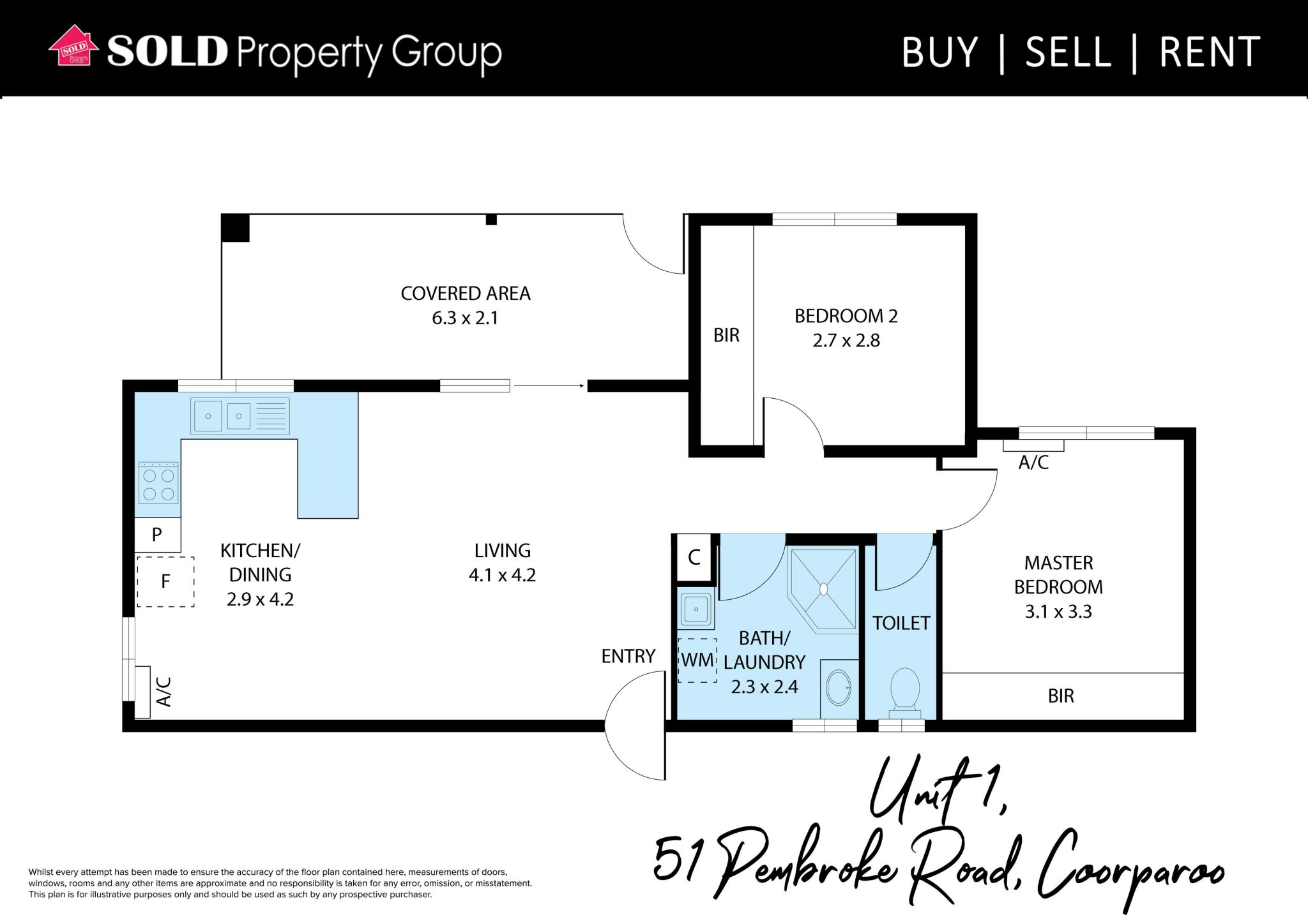 The open plan living and dining is serviced by the practical kitchen. Timber look flooring and light and fresh carpets enhance the airy and fresh feeling throughout. The hallway leads to the resting wing with two built-in bedrooms, a well proportioned bathroom/laundry and separate toilet too.