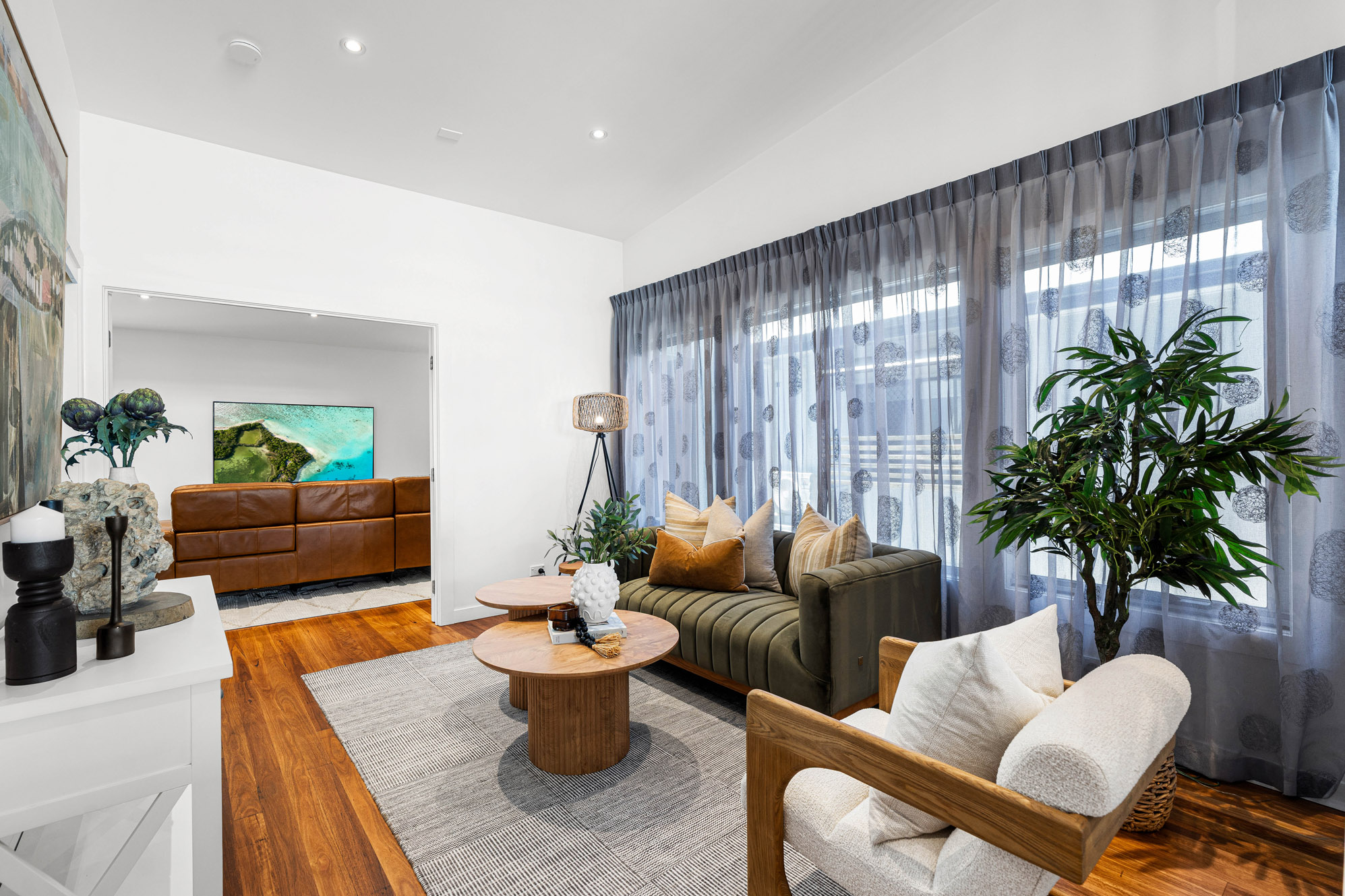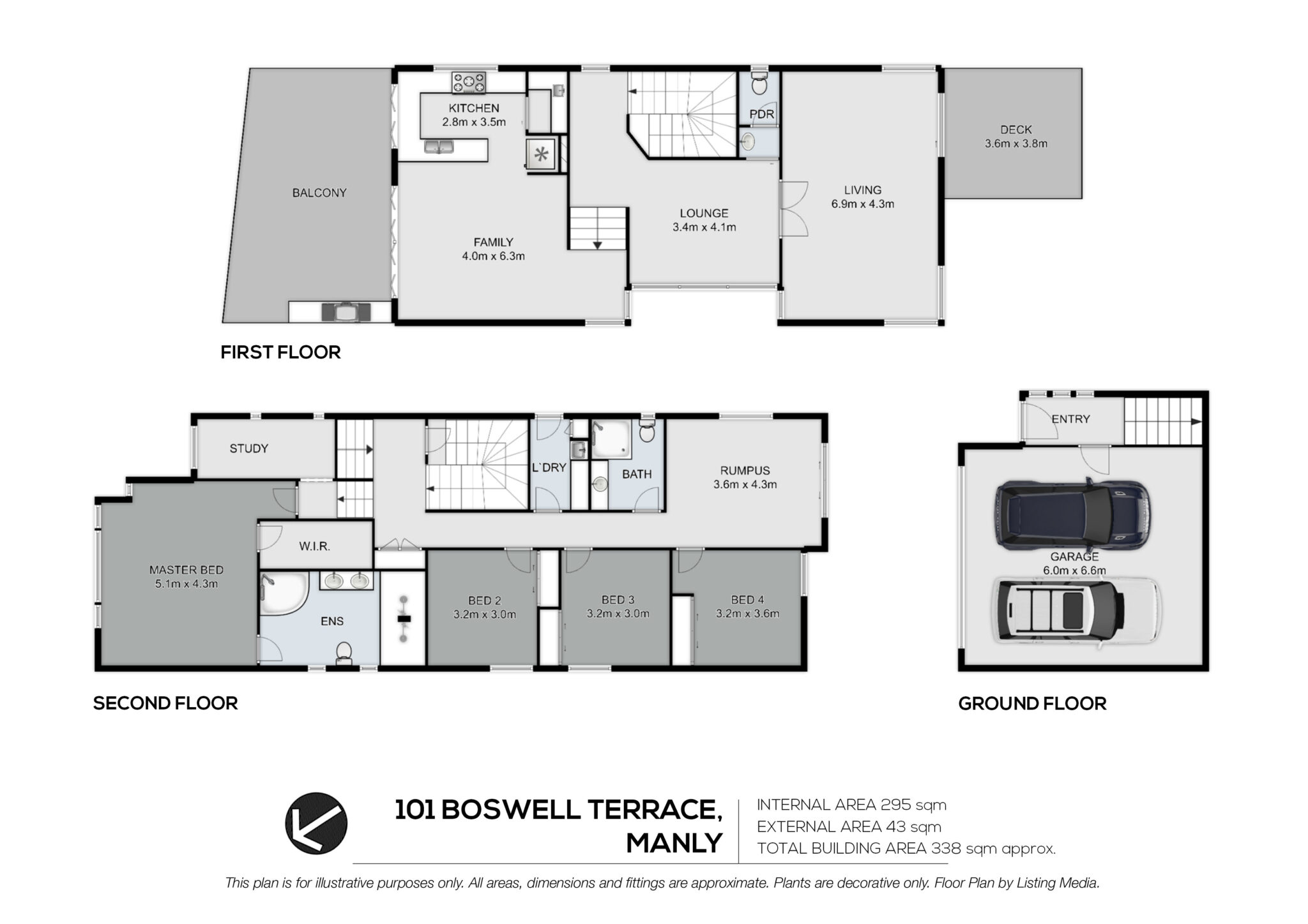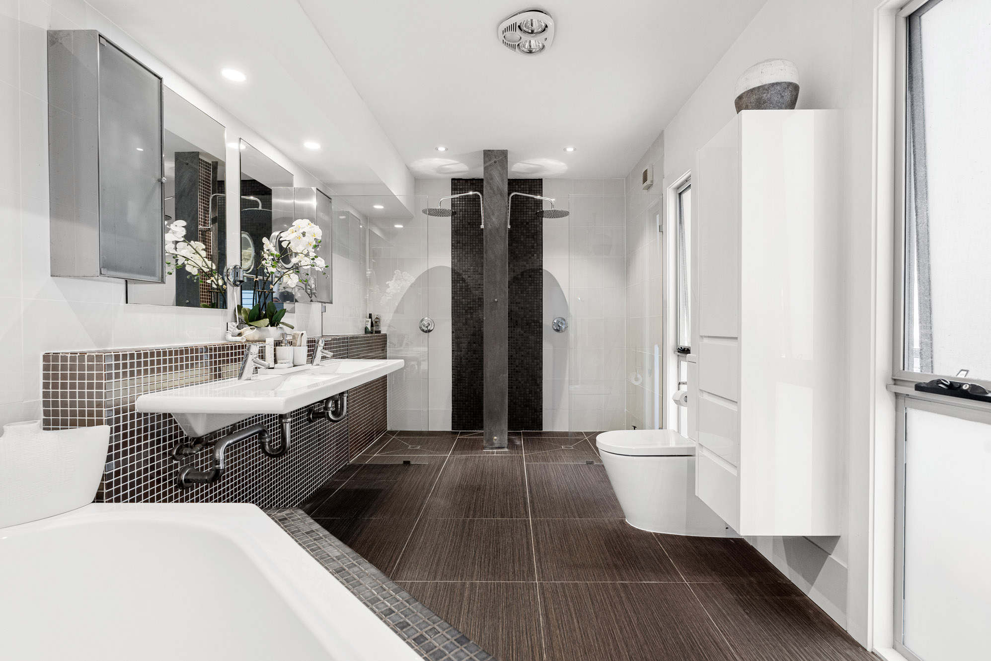 The master suite is a private retreat, offers a large walk-in robe and luxurious dual vanity ensuite complete with bath. Three additional bedrooms are serviced by a stylish family bathroom, each with built-in robes, a third living area/rumpus room completes this level.