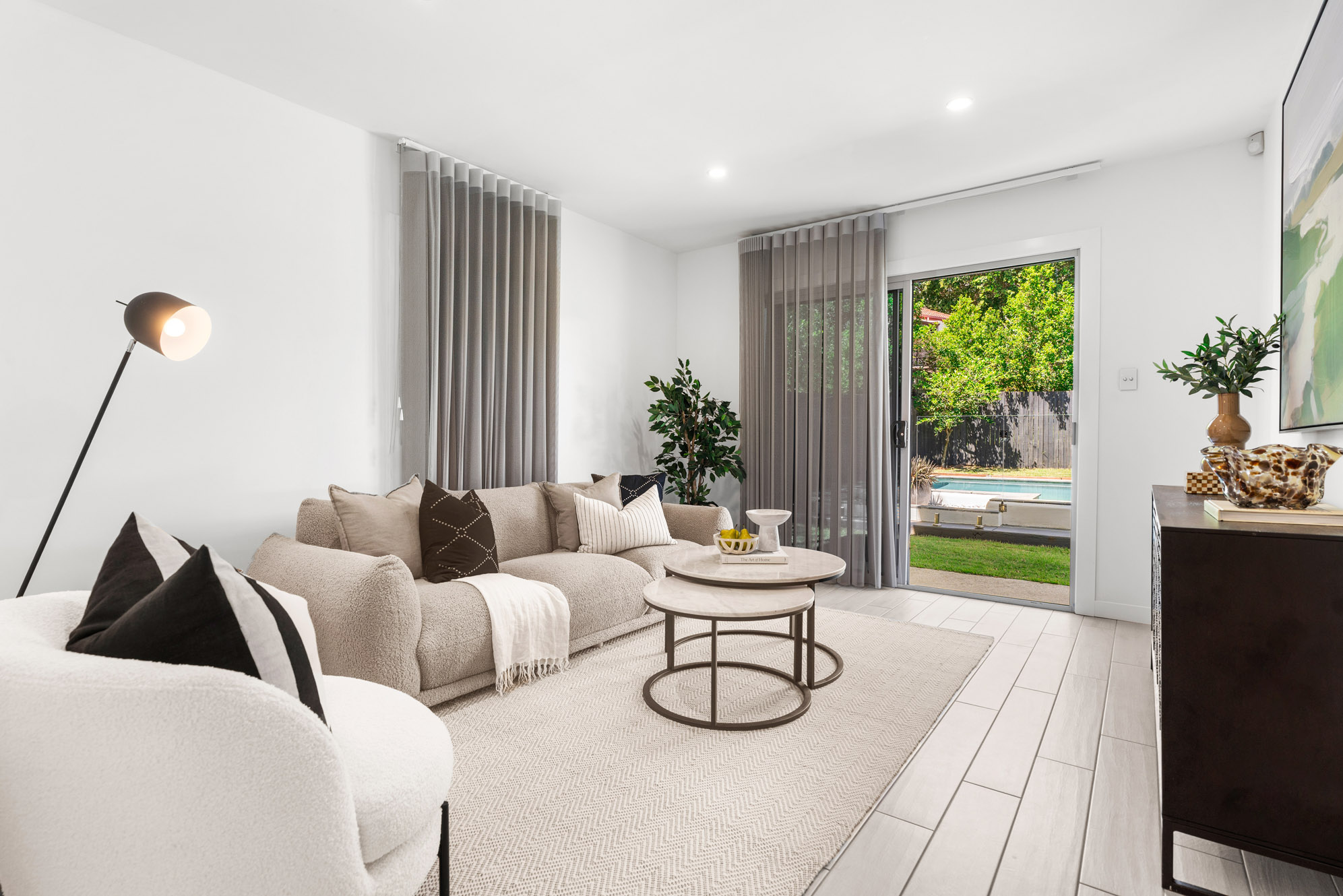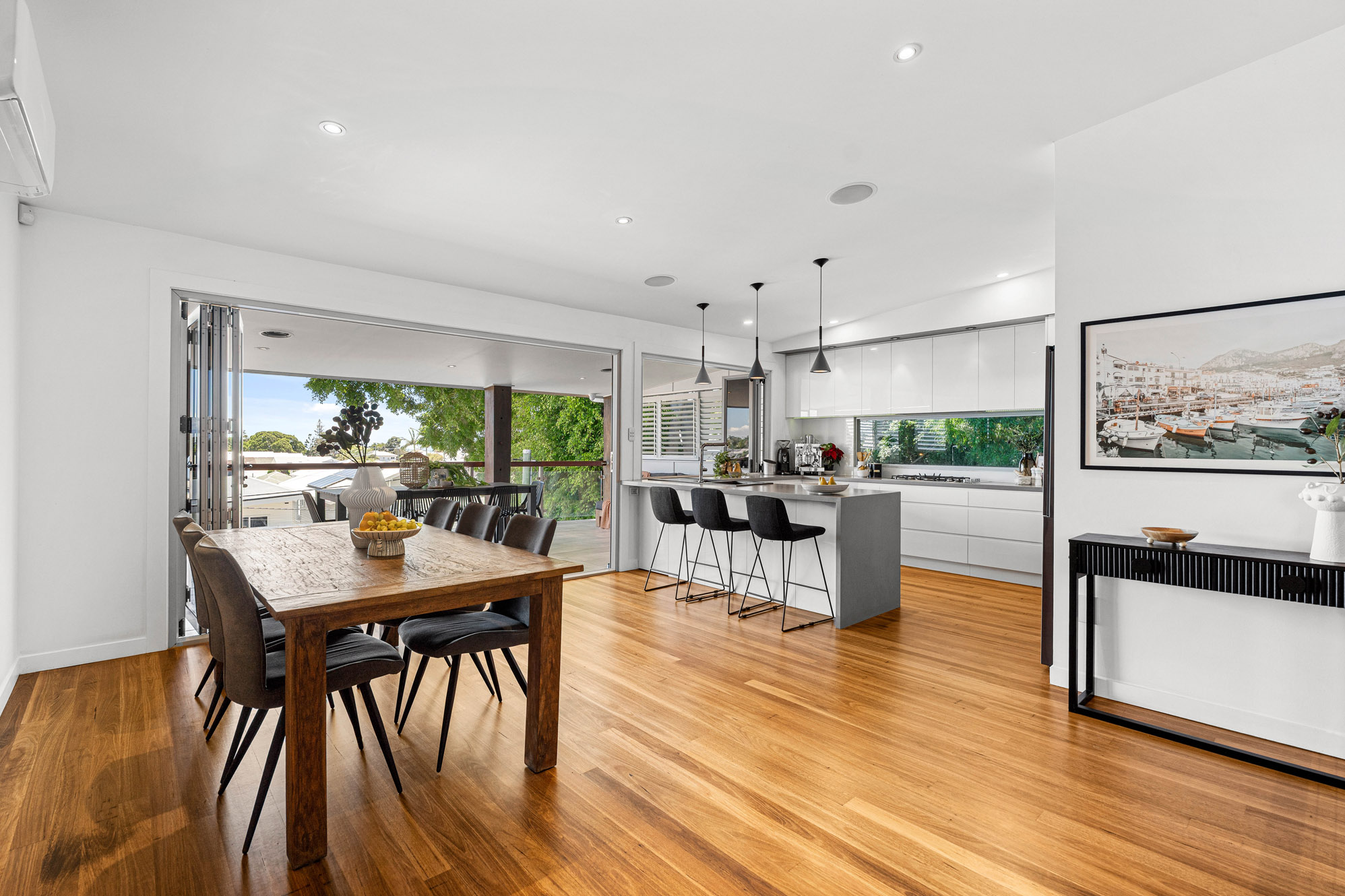 – Four bedrooms with BIR, study, two bathrooms, powder room, double garage – Expansive living space with bay views – Multiple living areas, upstairs and downstairs – Gourmet kitchen with stainless steel appliances and gas cooktop – Entertainer’s deck, perfect for relaxing with family and friends – Multiple split system air-conditioning throughout – Fans, Cbus lighting, Vacuum maid – Integrated sound system throughout – Sparkling in ground pool, ideal for those long hot summers