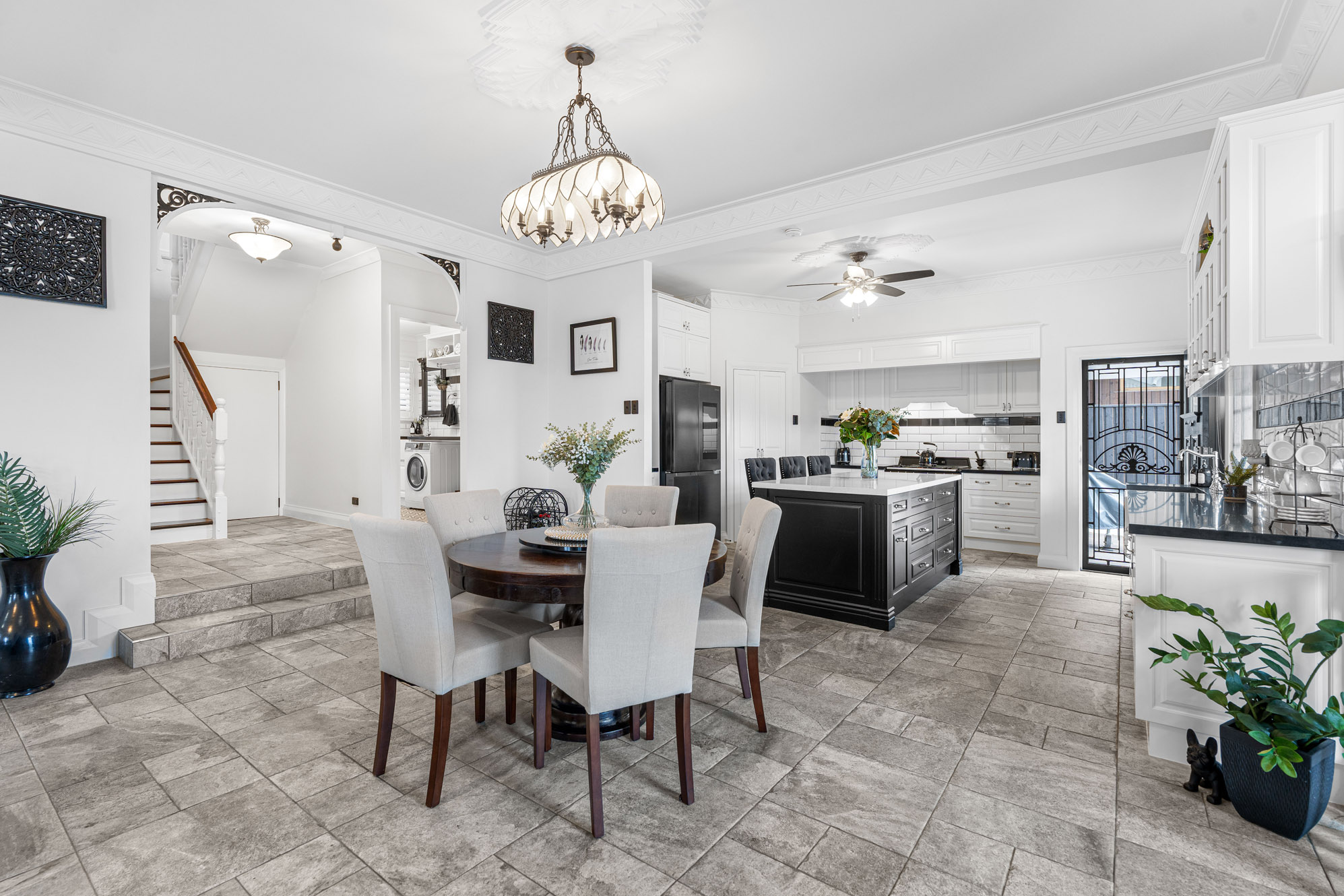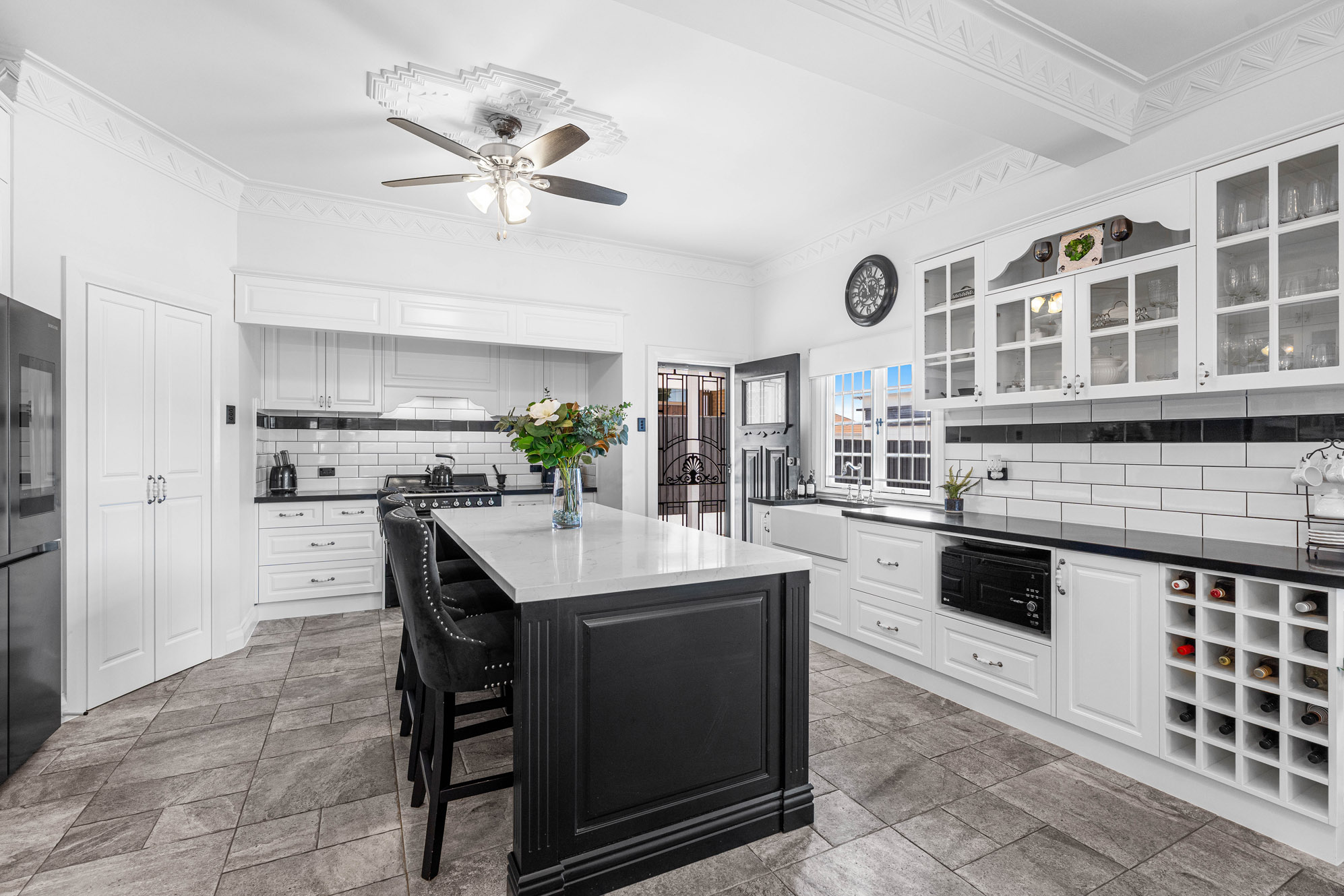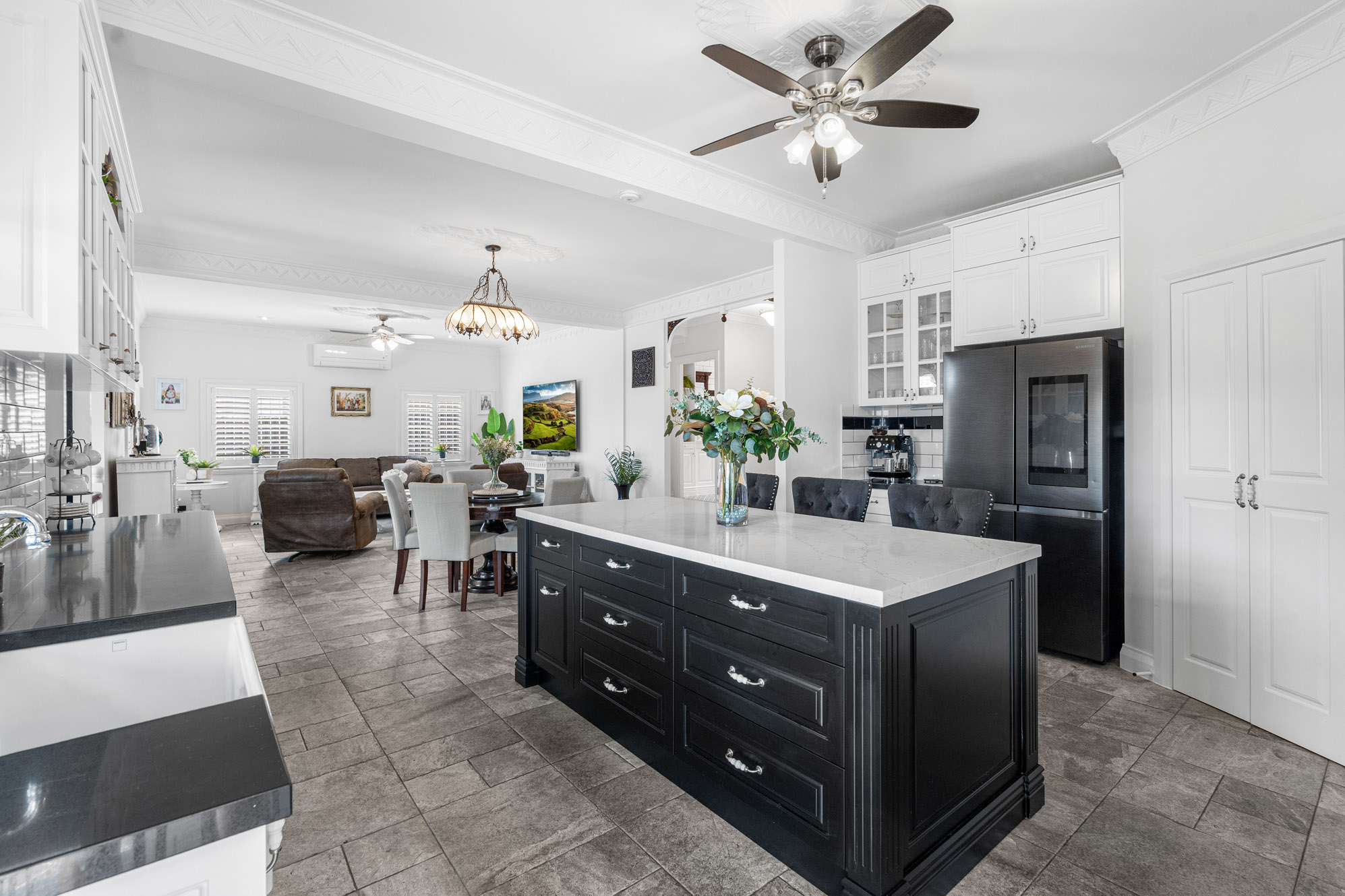 The essence of the original character home is carried through a double-storey layout designed for modern families seeking luxury, comfort and convenience. At its heart, expansive open plan living and dining areas bask in natural light, the chef kitchen features a 900mm SMEG freestanding oven, integrated dishwasher, Porcelain Farmhouse double sink, stone benchtops, porcelain tapware imported from England and a walk-in pantry. On the lower level you will also discover two generous size bedrooms, a fully tiled bathroom with quality imported tapware, family size laundry and access to the rear yard.