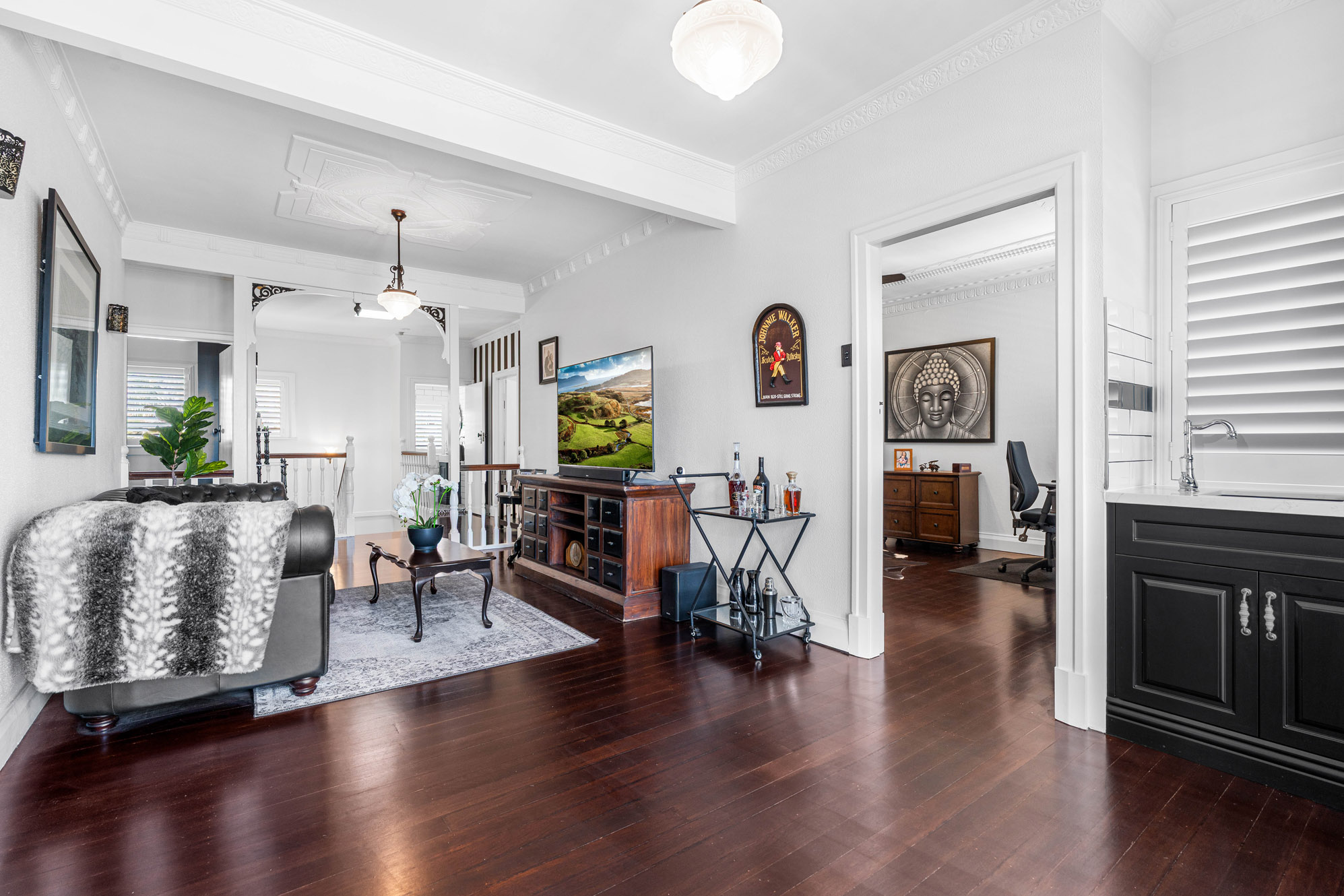 Upstairs, the mood changes with the decor, more of a bougie upmarket luxe feel, high ceilings, polished timber floors, an escape to a sanctuary where you can wind down from a busy day.