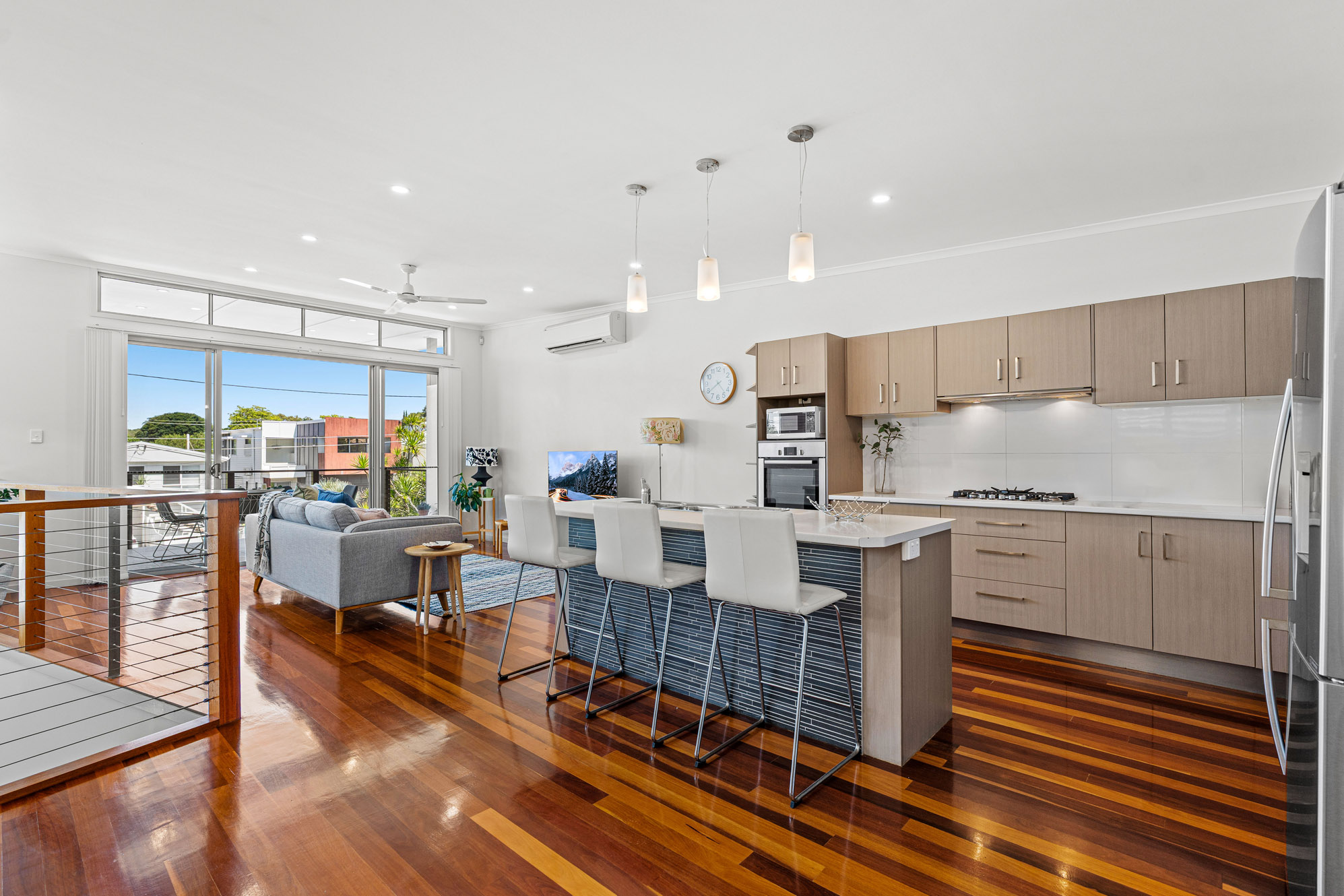 Perfect for those seeking a low-maintenance lifestyle, this architecturally designed three-bedroom property showcases a beautiful modern aesthetic and an intelligent layout. A stone’s throw from the Esplanade, rail service, prestigious schools and a multitude of shops and dining options, this fantastic residence is also only 20mins from Brisbane’s CBD. Making an excellent first impression with its striking facade and manicured front gardens, the home also boasts attractive hardwood floors, magnificent voids, plenty of glass and a fresh white colour palette.
