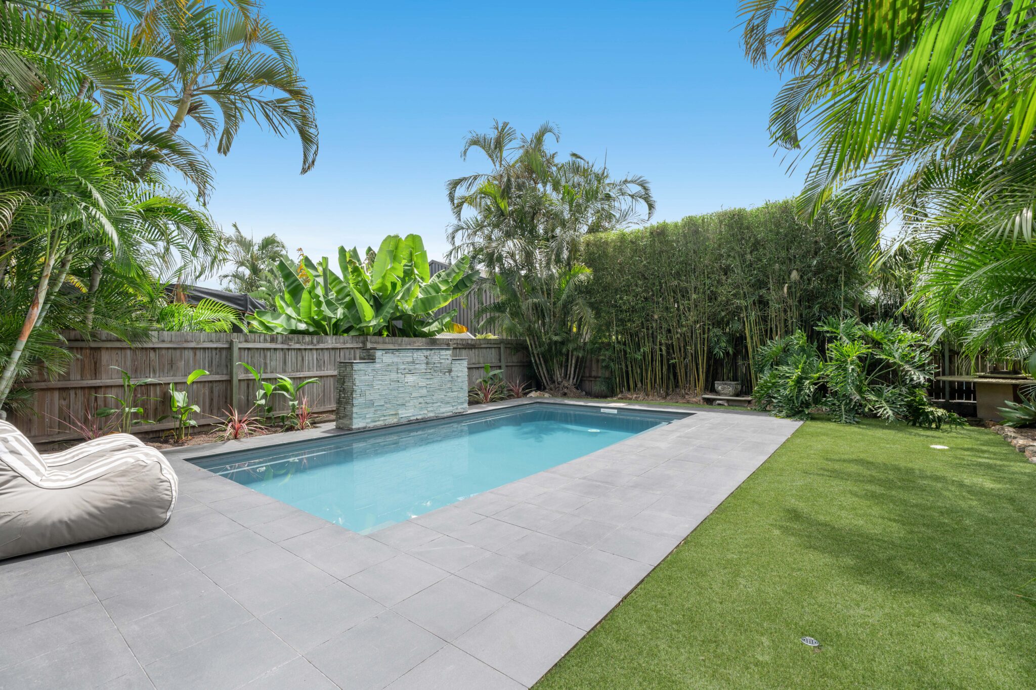 Continuing from a covered front porch and the residence’s welcoming entry, a generous open-plan living area is situated on the upper level. An excellent adjoining kitchen displays quality appliances, integrated fridge/freezer and ample cupboard storage, while a multitude of popular dining options are nearby. Steps away, a covered elevated rear deck with plentiful entertainment space leads down to a fully fenced grassed private rear yard. Here, you will find a sizeable patio, mature gardens and a sparkling in-ground swimming pool.