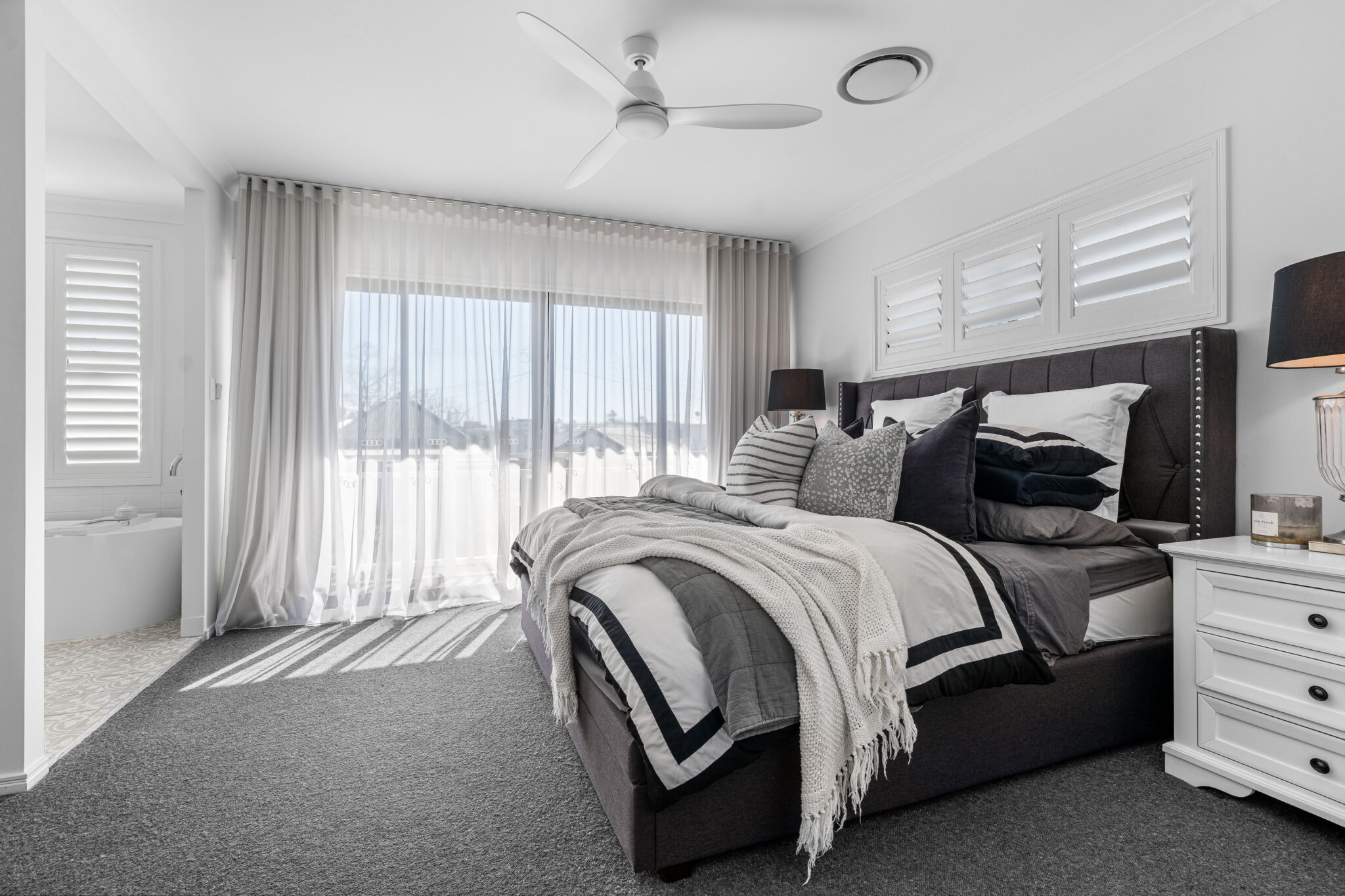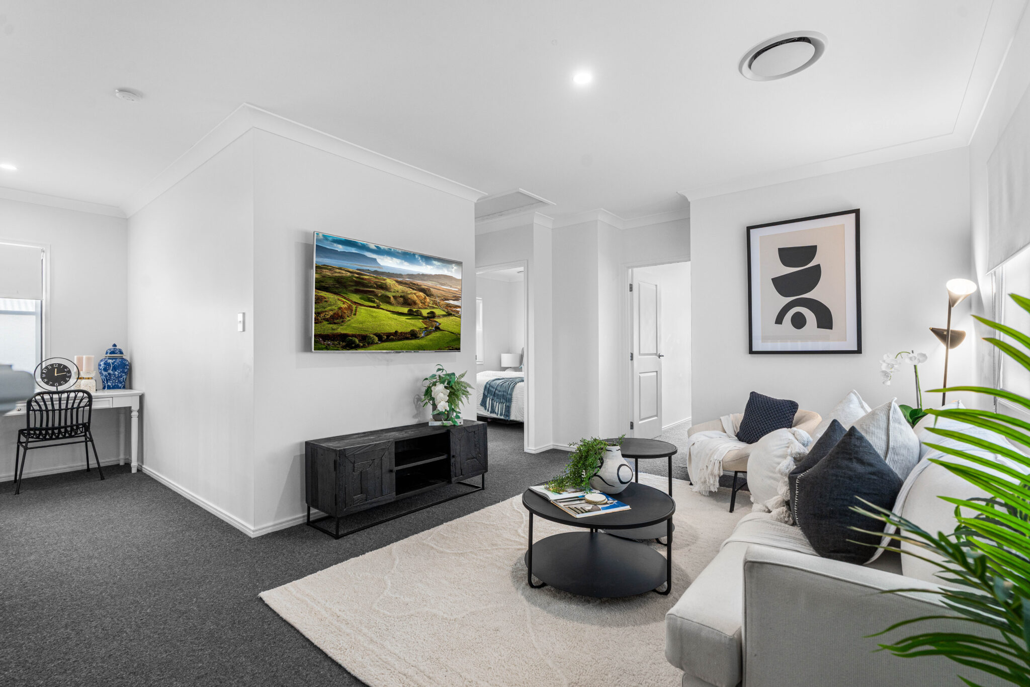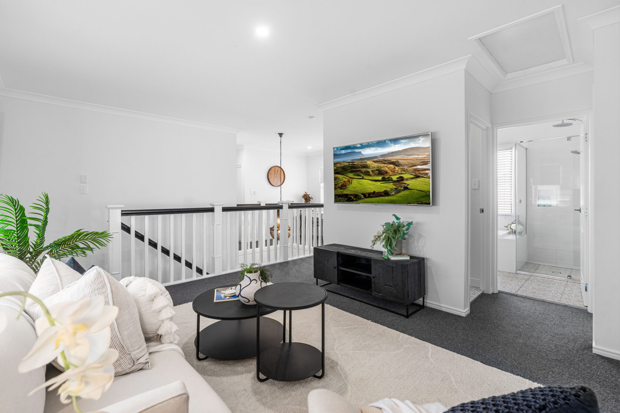 The cleverly designed upper level has a family-friendly floor plan that offers practical solutions for the growing family. It features four additional bedrooms and three bathrooms with great separation between the parents’ master suite and the kids’ bedrooms. Two of the bedrooms have walk-in robes and a shared ensuite, while the third bedroom has a built-in robe and is serviced by a family bathroom and separate toilet. The Master bedroom has a large walk-in robe, while the grand ensuite is equipped with a double vanity, shower, toilet and freestanding bathtub. The upstairs rumpus room offers not only separation between bedrooms but is also a welcomed second living space ideal for families. There is also a study nook perfect for homework or studying.