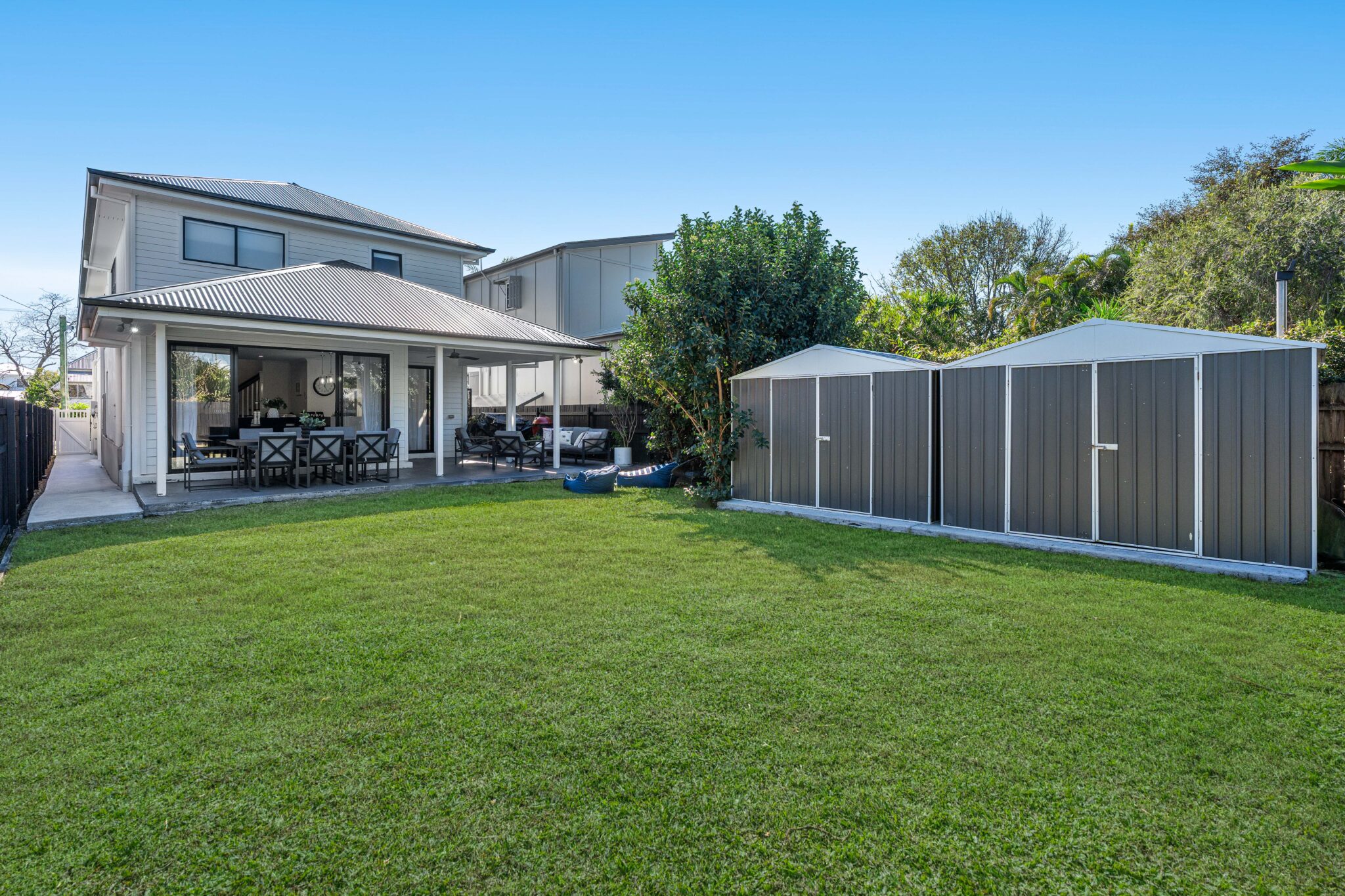 Ideally positioned metres from the waterfront in one of Brisbane’s most sought-after suburbs, this 4-year-old property has been purpose-built with a guest bedroom and bathroom downstairs and four beds, three baths upstairs. Perfect for investors, families, and those seeking multi-generational living, this spectacular residence on a 405m² block also features a large rear yard and room for a pool.