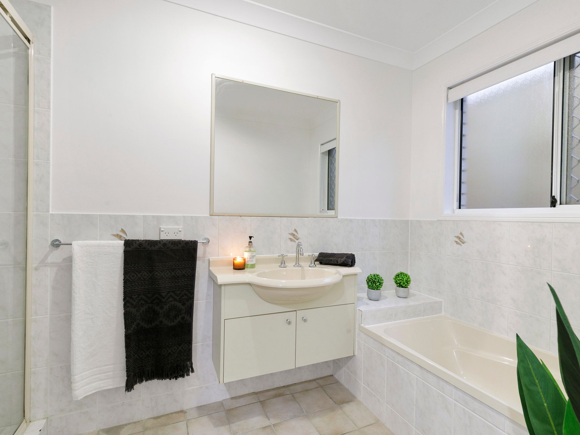 There are three bedrooms toward the rear of the home, all with built-in robes. The family bathroom is generously proportioned and has a separate bath and shower.