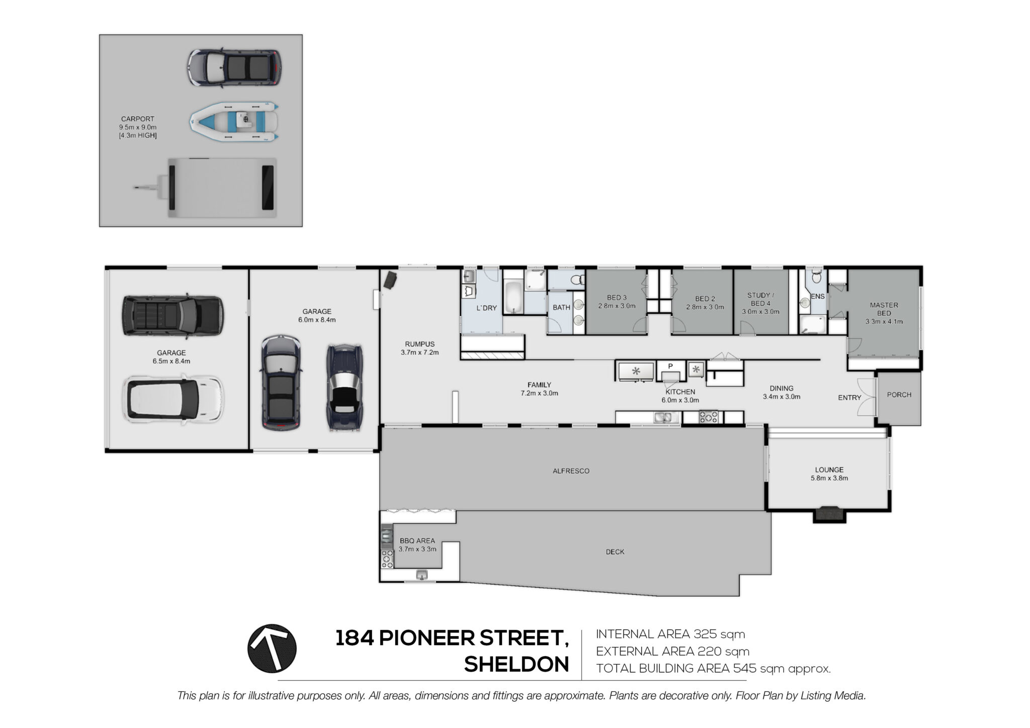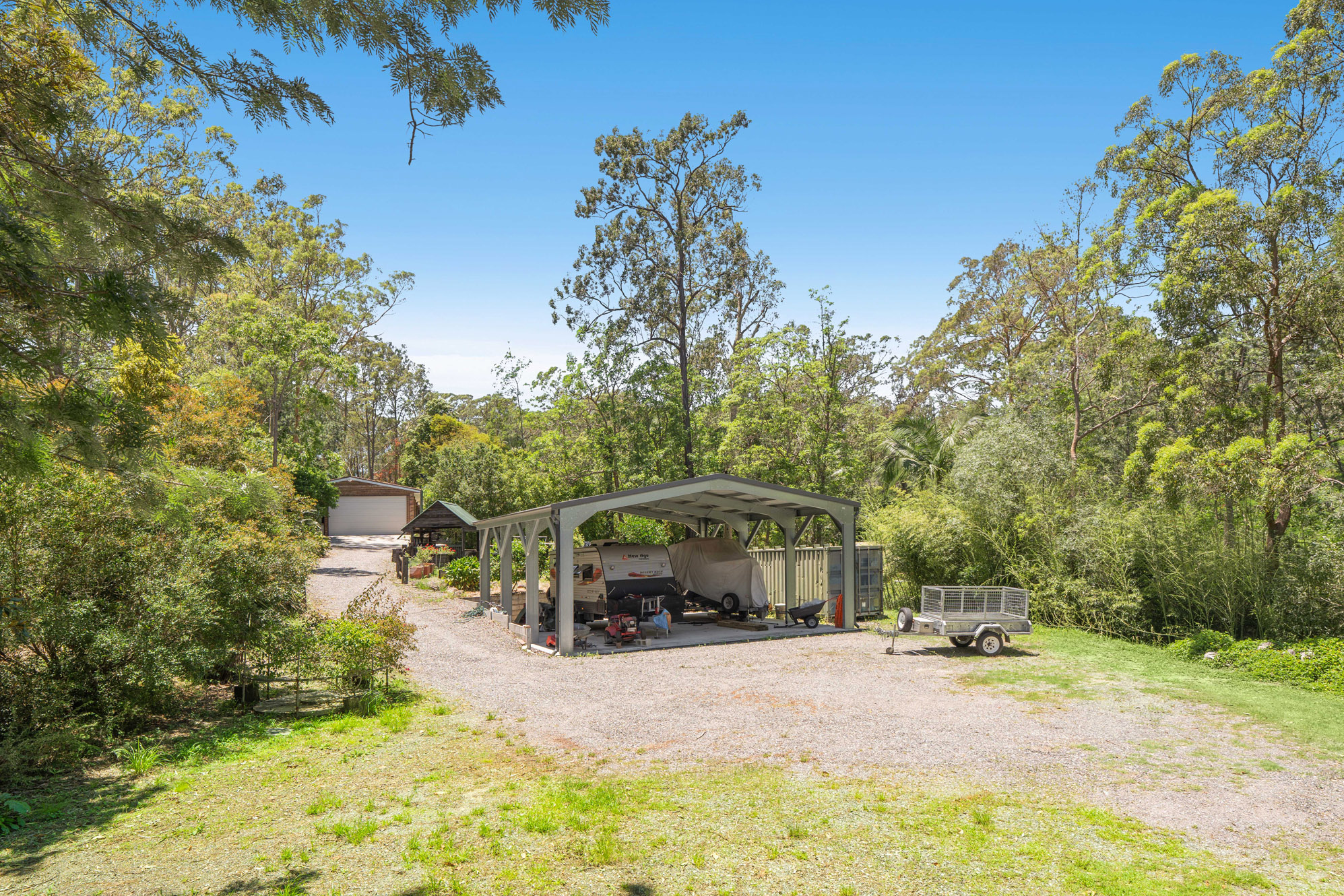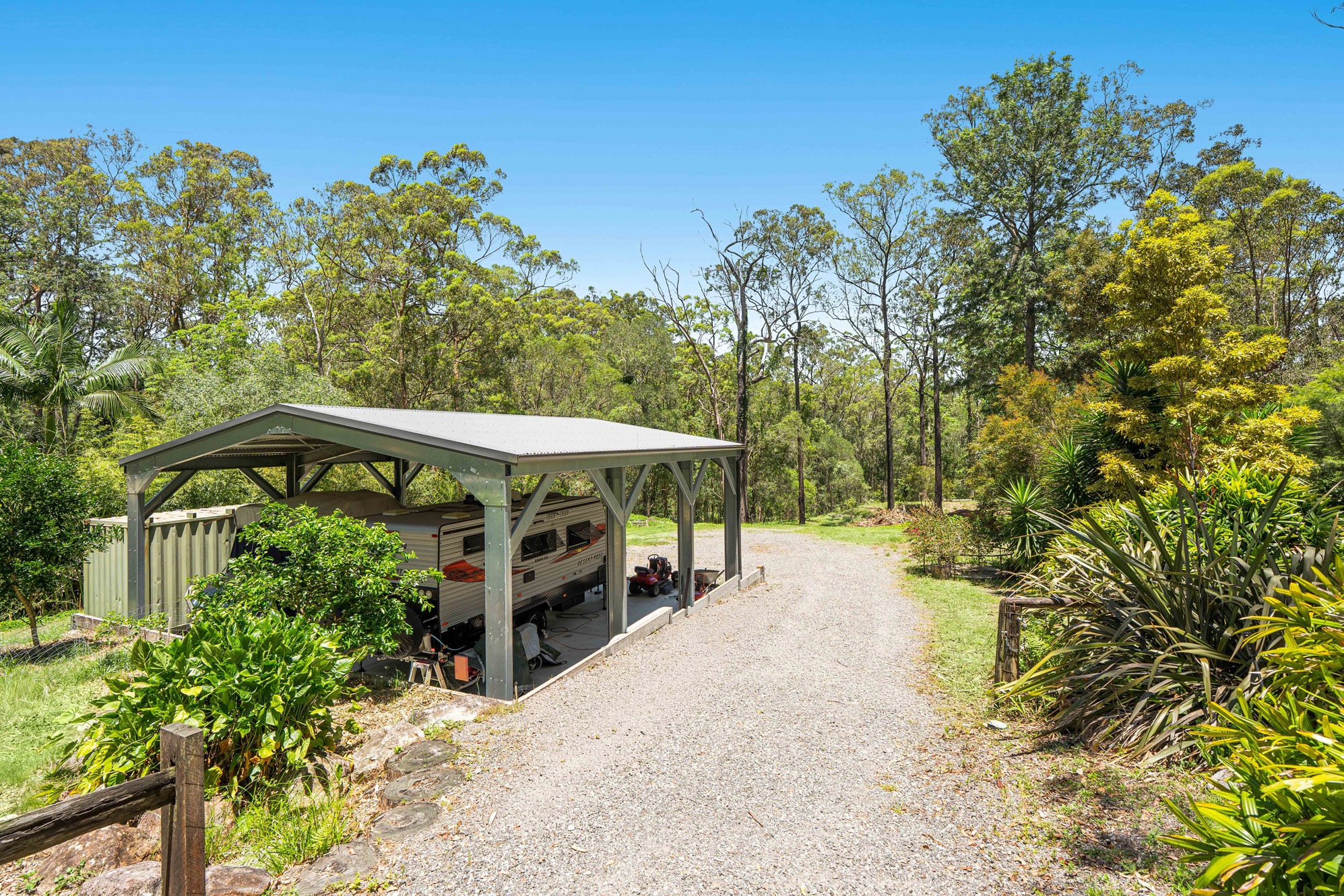 • Separate free-standing carport showcasing an extra-high roof to accommodate a boat and caravan