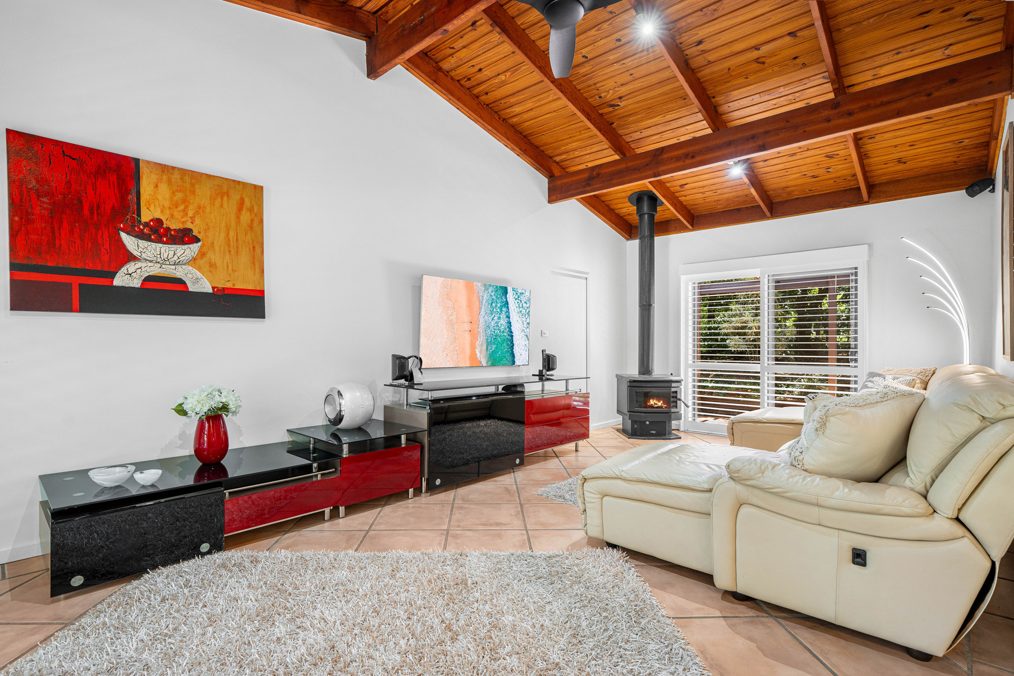 Spacious open-plan living and dining area punctuated by a wood-burning fireplace, as well as a large lounge or rumpus room – Superb adjoining kitchen displaying stone benchtops, quality appliances and ample cupboard storage. The real showstopper is the undercover outdoor entertainment area large enough to accommodate a 14-seat table and chairs, lounge area, fully operation outdoor kitchen with industrial appliance and floor to ceiling stacker doors that extend the large in ground pool complete with spa.