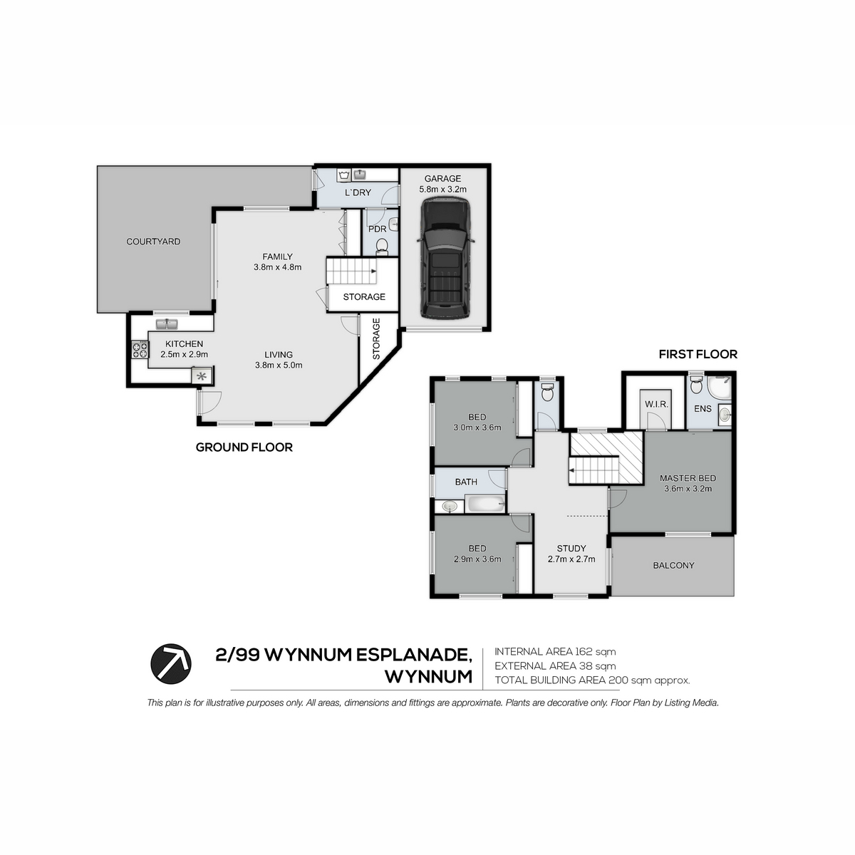Upstairs, a versatile second living area or study retreat opens to a balcony, offering a serene space to unwind, play or work from home. All three bedrooms are thoughtfully positioned on this level, including a master suite featuring a walk-in robe and ensuite. The additional bedrooms include built-in robes and enjoy soft natural light and bay glimpses, serviced by a main bathroom with a bathtub and a separate toilet.