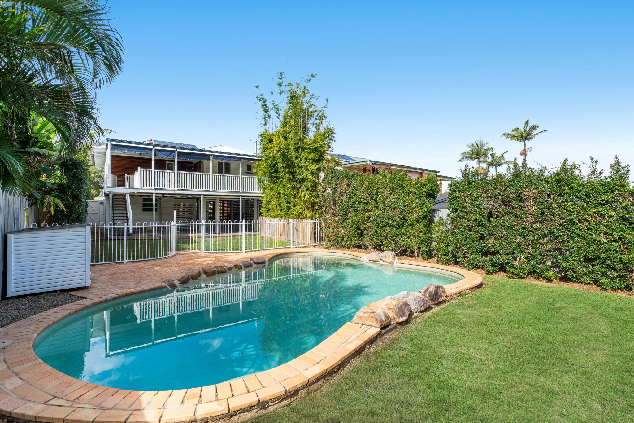 · Undercover entertainment deck overlooking the rear yard and inground pool