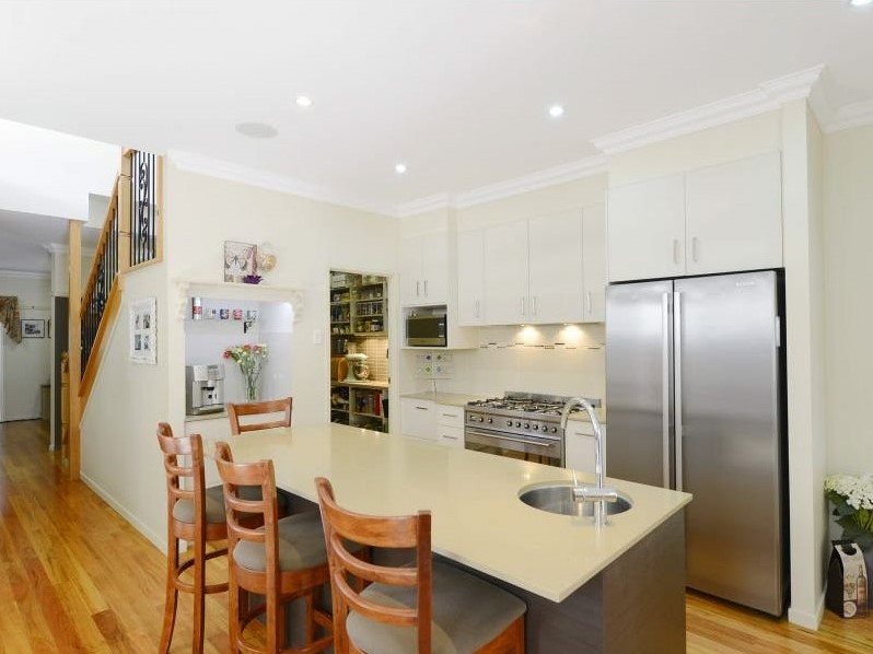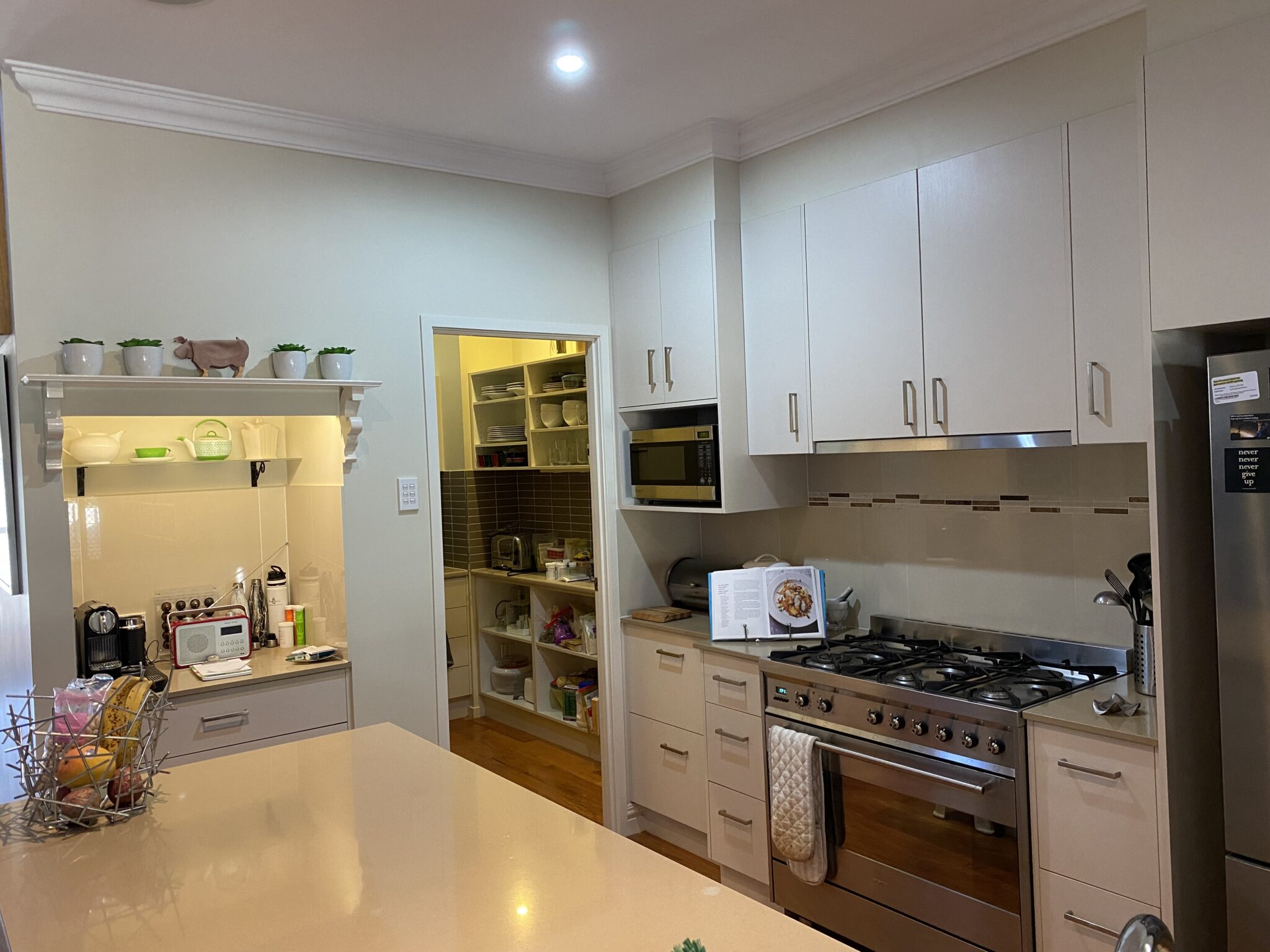 • Kitchen with 6 burner gas cook top and electric oven- dishwasher, walk through butlers pantry features ceaser stone bench top