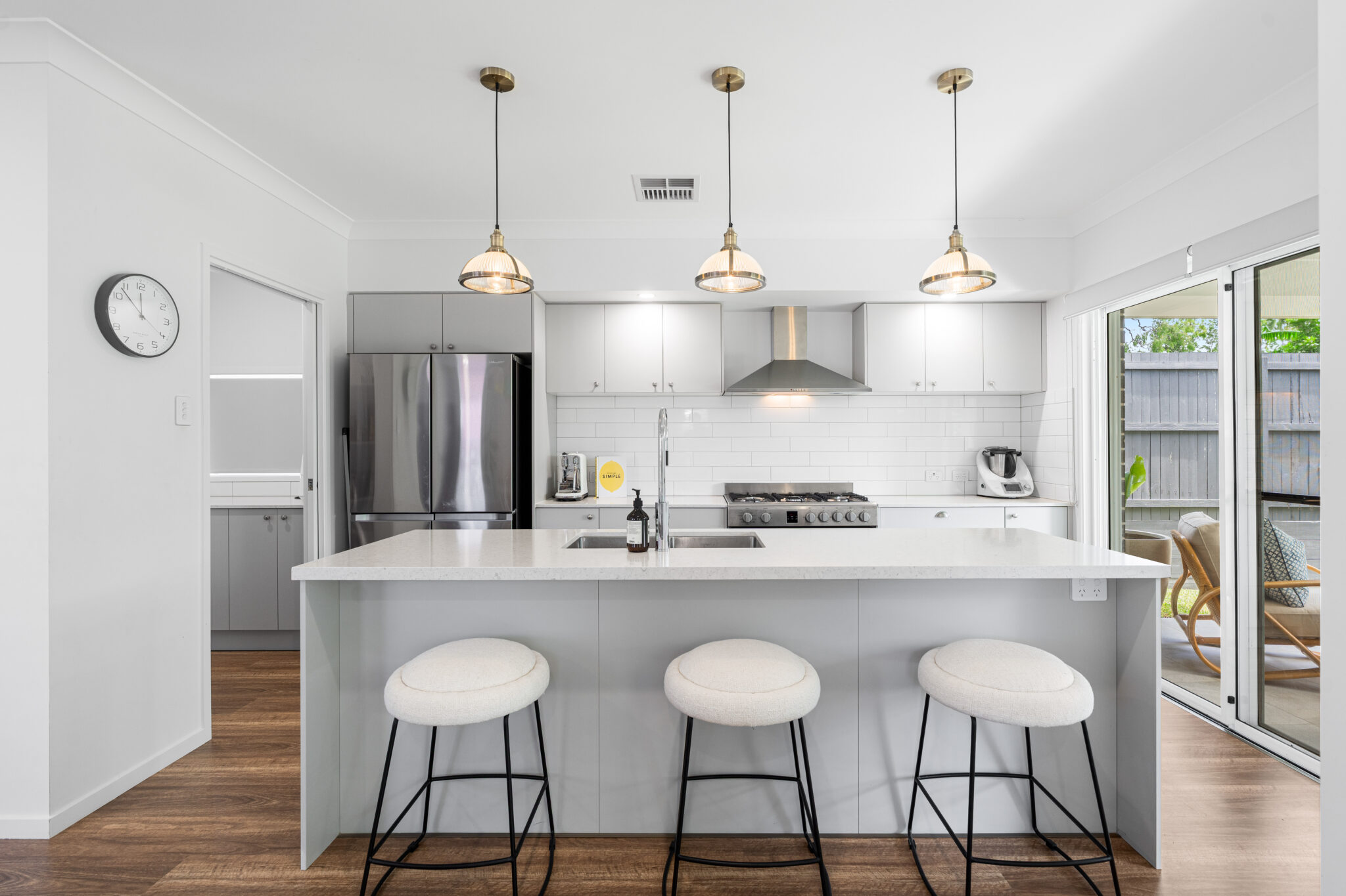 Defined by its flawless design, striking street presence and perfect position a short stroll to the Wynnum waterfront, this premier home rests in an enviable seaside enclave. Exquisitely crafted for executive luxury and family functionality, the open composition spans two storeys and showcases light-filled spaces with clean lines, hardwood flooring, and a relaxed coastal decor. The ground floor creates an inviting oasis with a spacious living and dining area surrounding the masterful kitchen. Adorned with Caesarstone benchtops, European appliances, a butler’s pantry, soft-close cabinetry, this sublime design effortlessly accommodates gourmet meals and casual conversation. Extending outdoors to the rear entertainment area and secure backyard, this alfresco retreat flows seamlessly off the interiors and provides an idyllic spot for playtime with the kids, BBQs with friends and extended family parties.