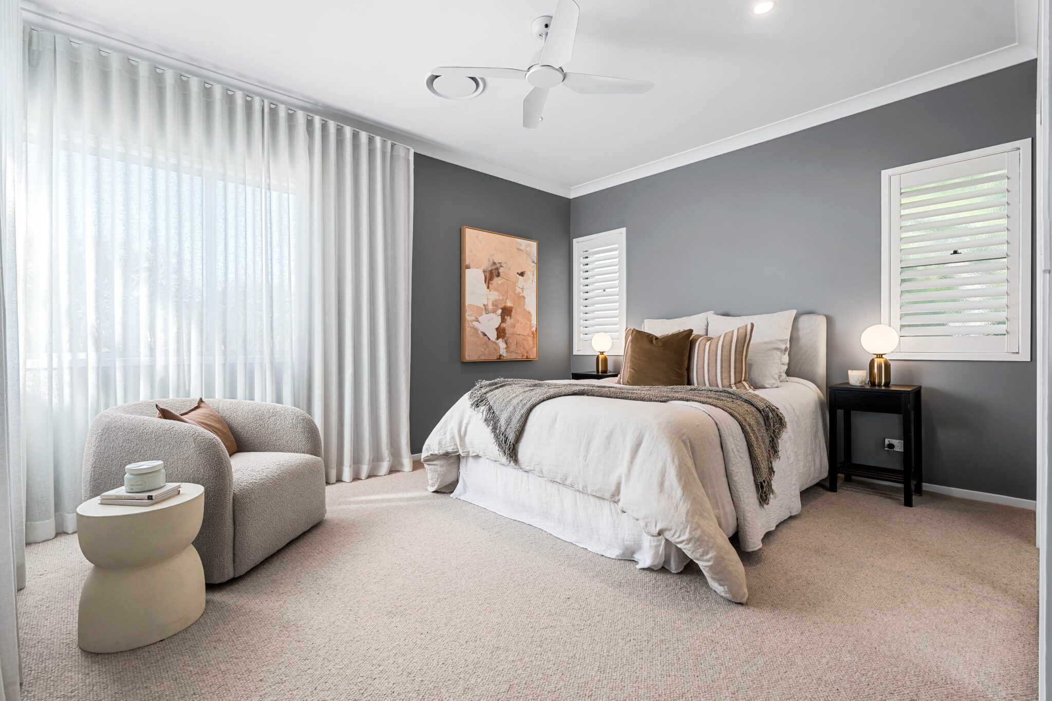 • Sheer curtains (Master, Living, Rumpus) and timber shutters elsewhere