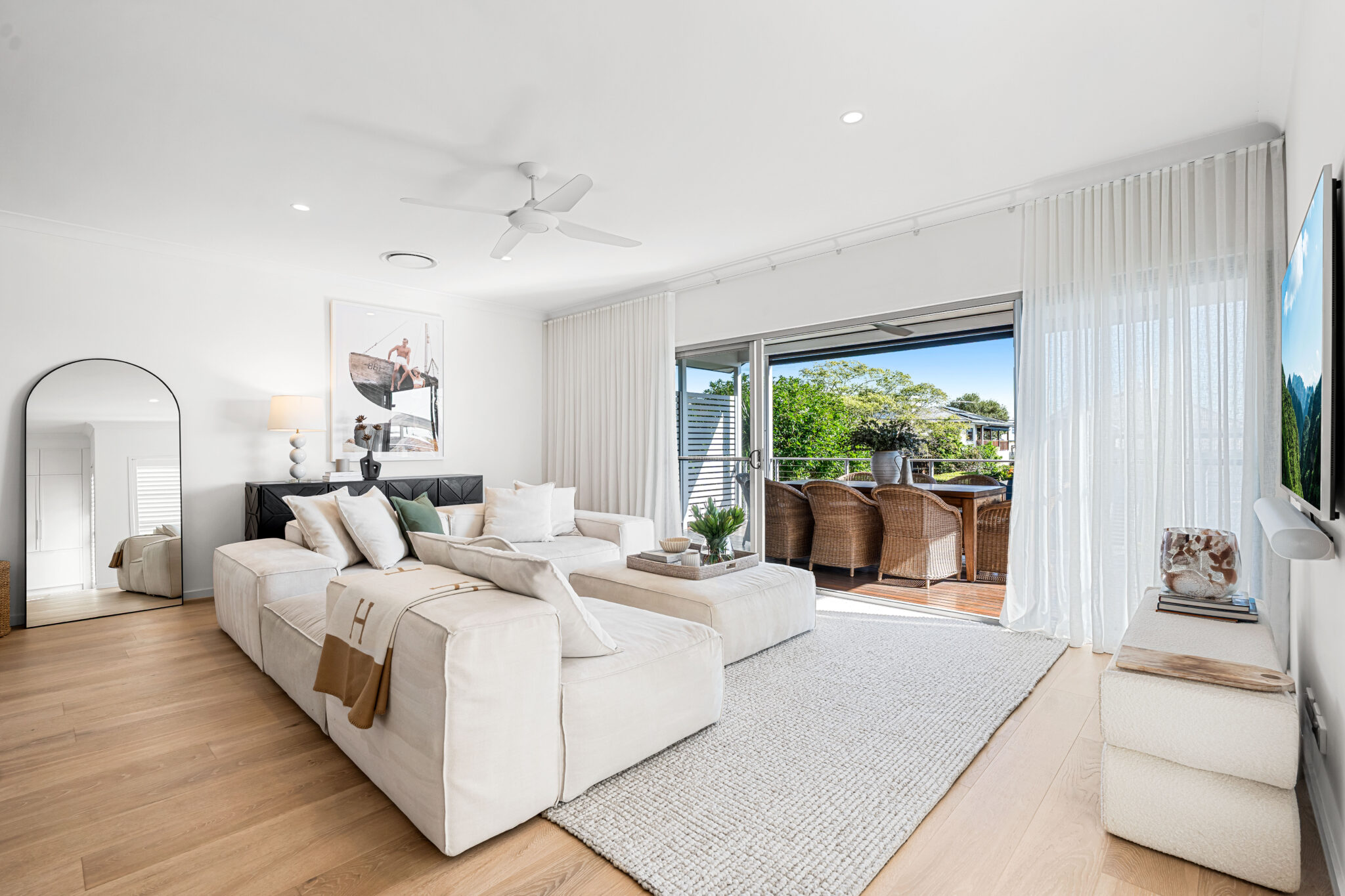 Flowing seamlessly to the outdoors, the main living and dining areas spill onto a generous undercover deck – the ideal setting to take in bay breezes and glimpses of the water while dining alfresco.