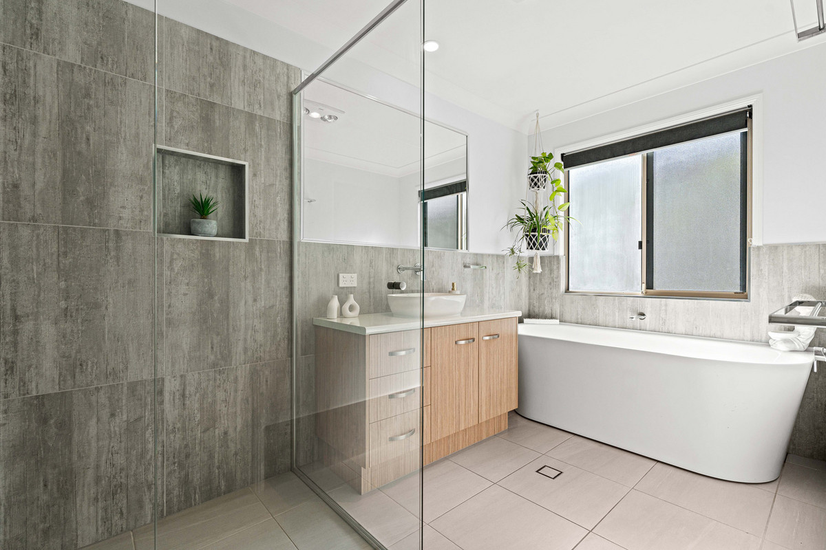 Accommodation comprises four bedrooms and two modern bathrooms with dual shower heads. The master bedroom offers a quiet sanctuary with its own ensuite, while the main bathroom unveils a luxurious bathtub.