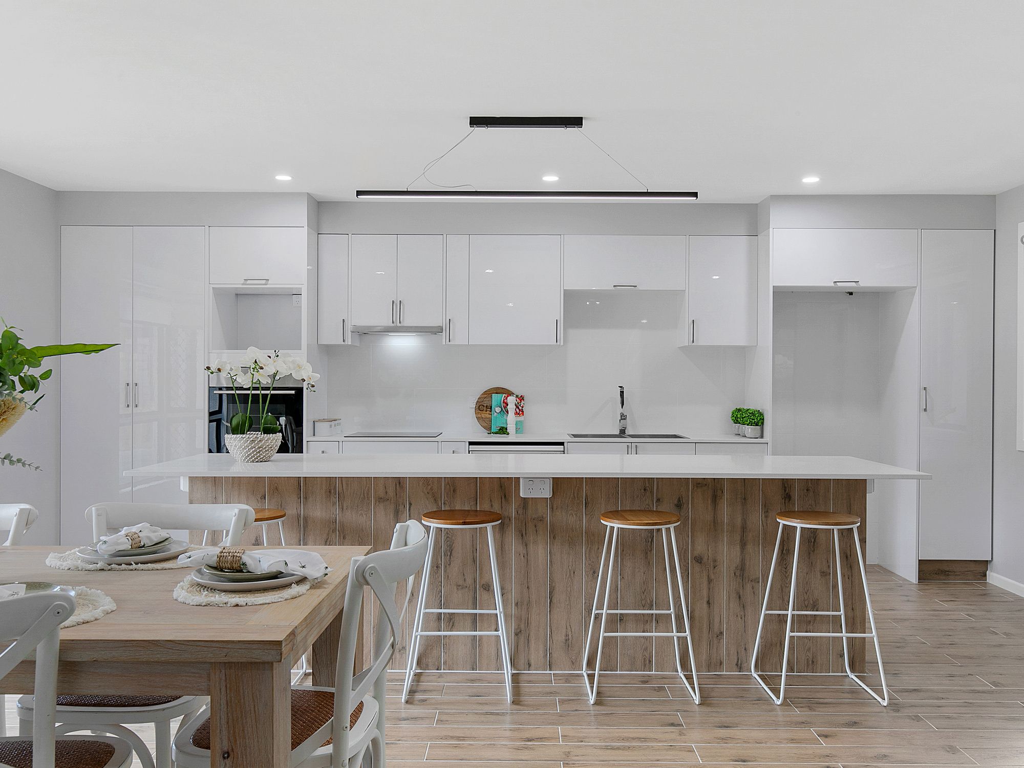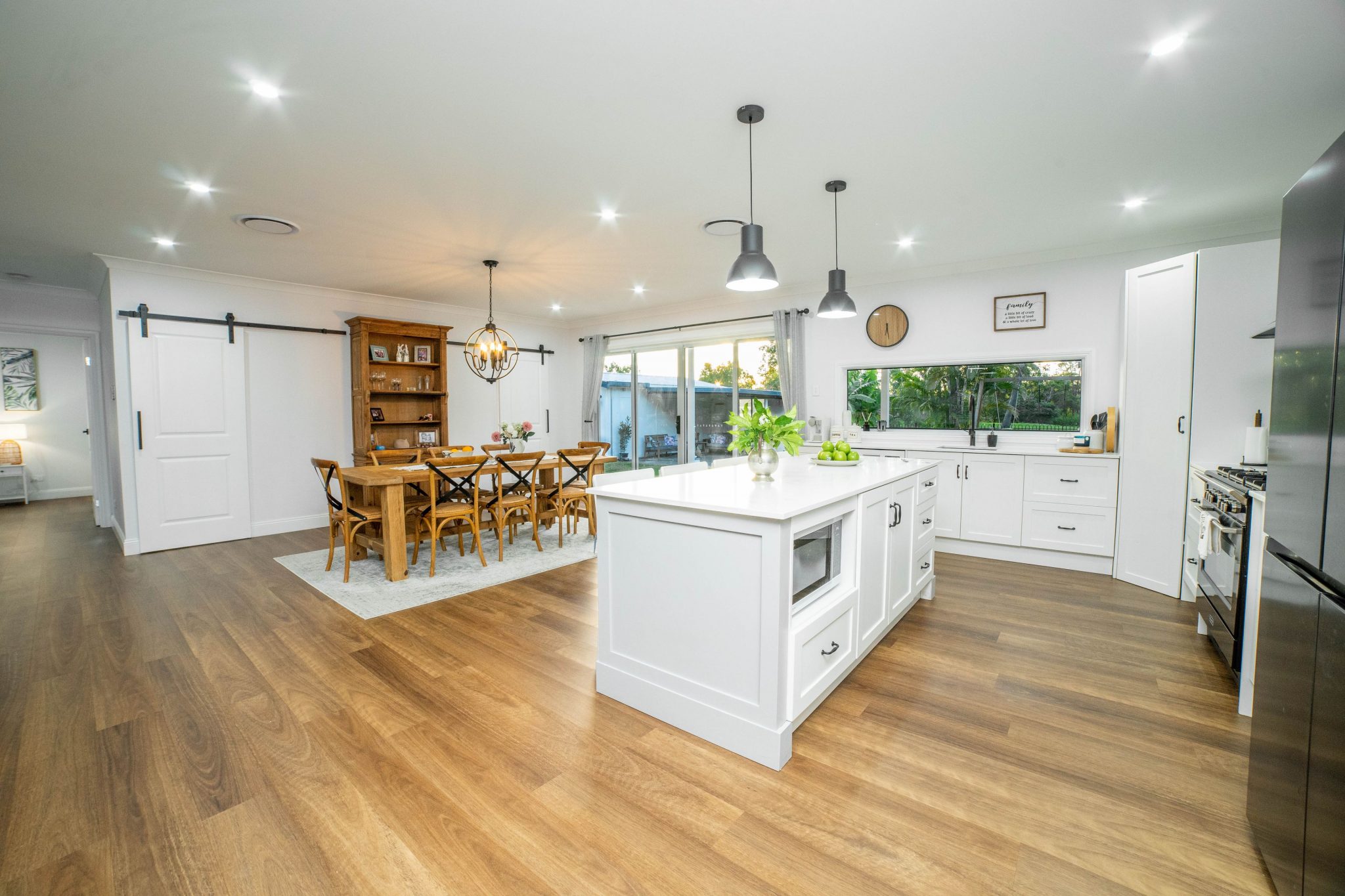 The kitchen is flanked by the dining area to one side and gleaming timber French doors leading to your SECOND kitchen on the other.