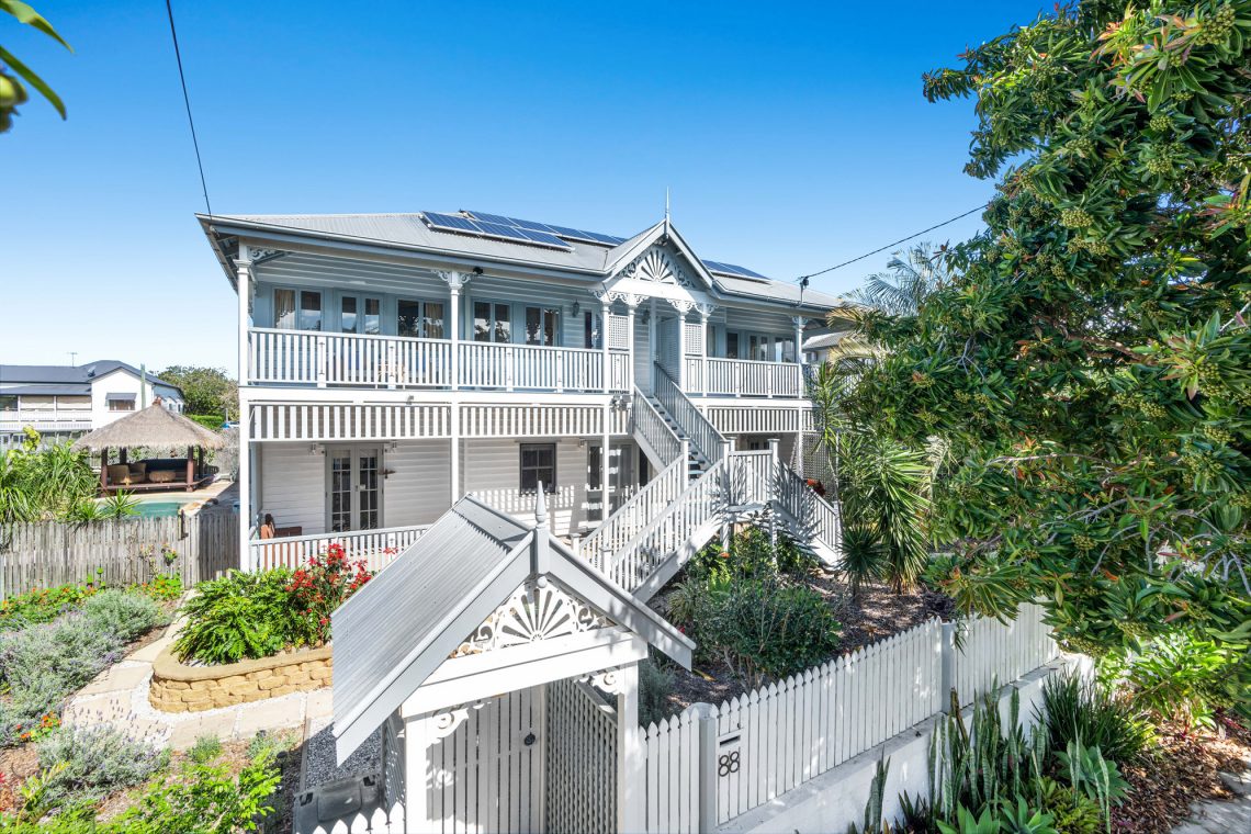 A landmark address in one of Brisbane’s premier seaside suburbs, 88 Walnut Street, Wynnum. This grand renovated Queenslander of huge propositions occupies an iconic 1,033m2 allotment with two street frontage harnessing sweeping views of the Bay and a location which is hard to beat as you are walking distance to all amenities.