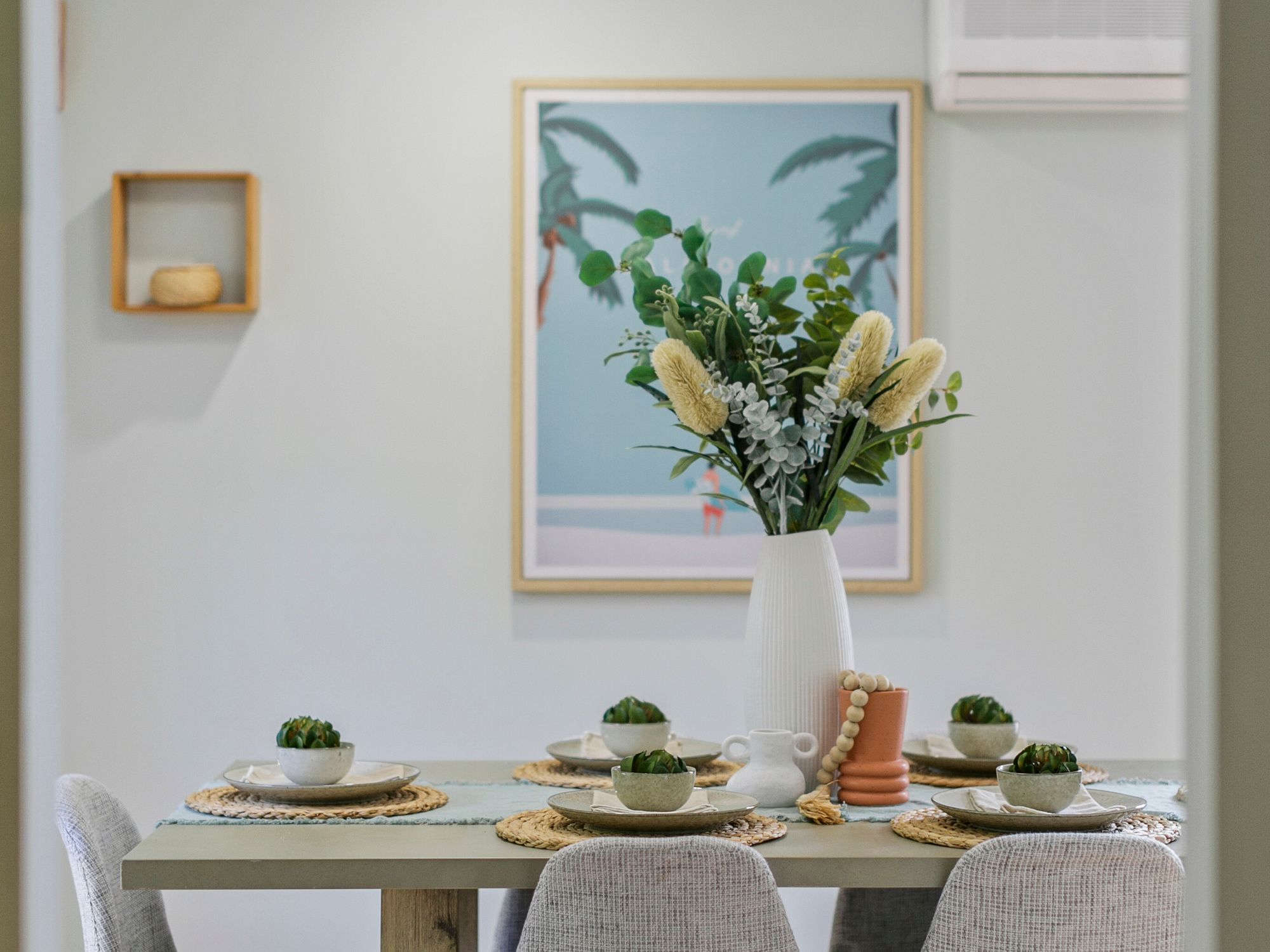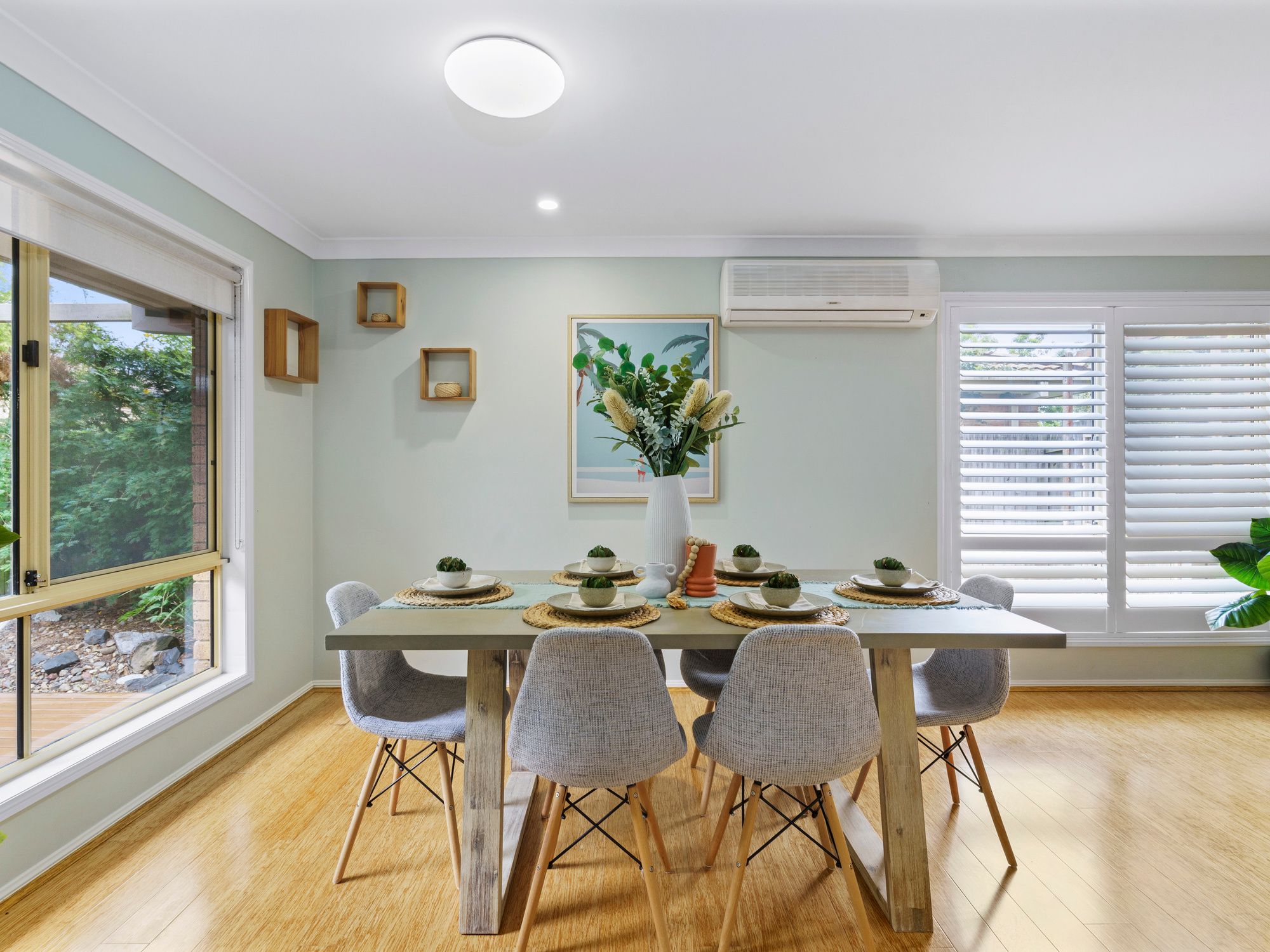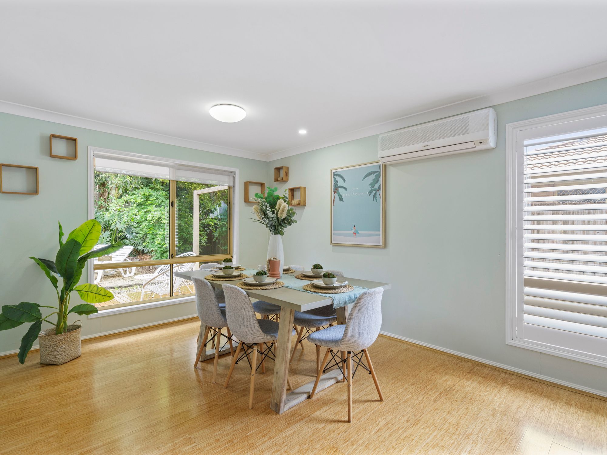 The dining connects with the smart galley kitchen, located centrally to operate as the all important hub of the home. Neutral tones, stainless appliances, practical storage and views out to the Alfresco make this a super practical space. The bench doubles as an informal meals or homework area for the kids too.